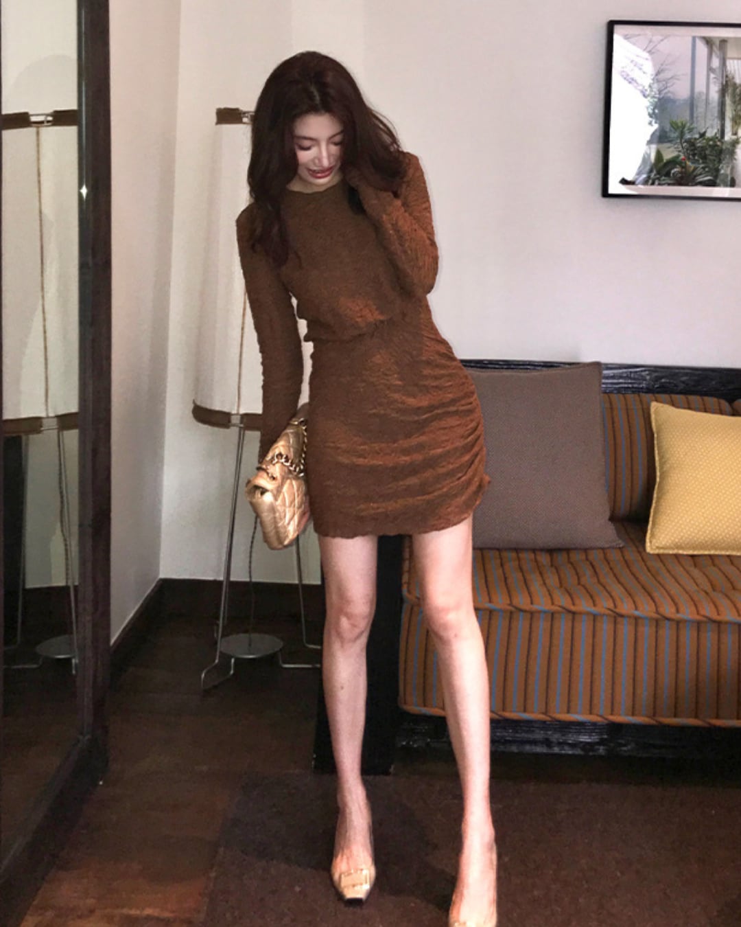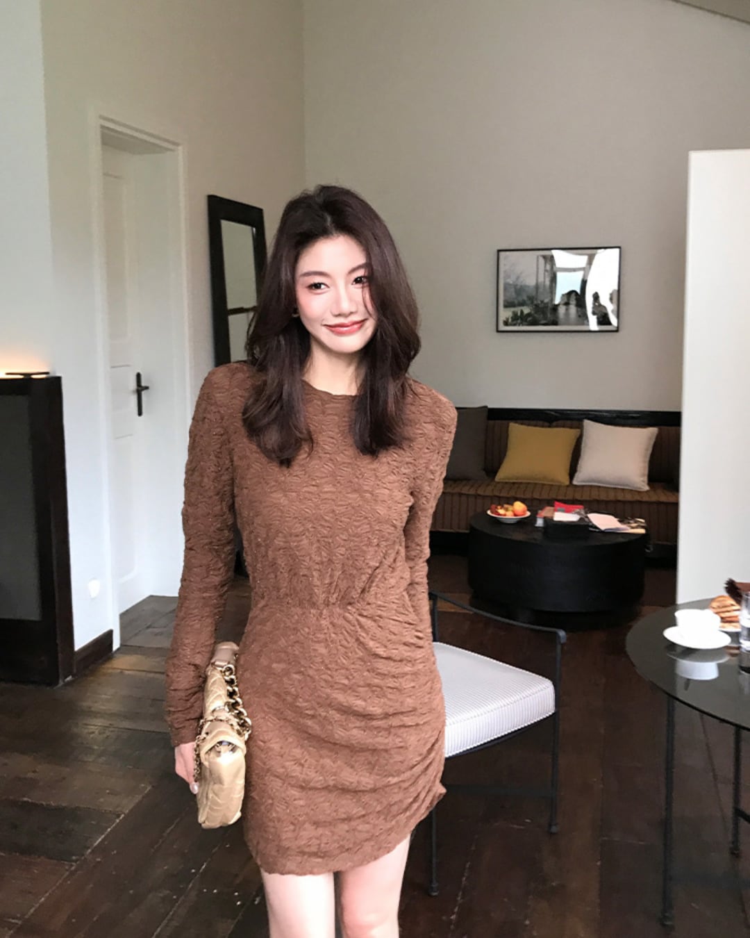 #ジャカード #ギャザーワンピース #長袖ワンピース #体型カバー #立体シルエット #上品カジュアル