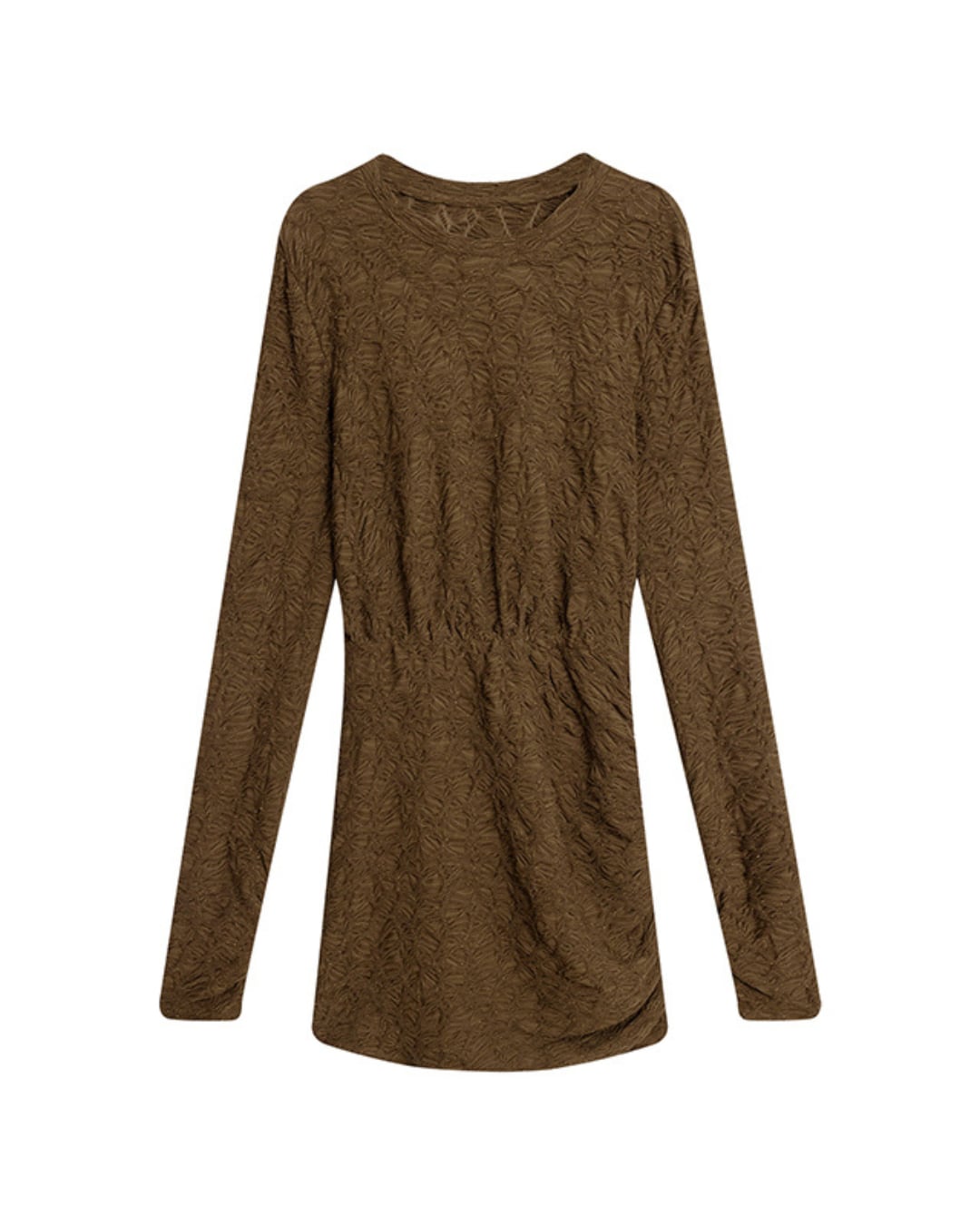 繊細なジャカード素材を贅沢に使用したロングスリーブワンピース。ウエストに施されたギャザーが立体感を演出し、さりげなく体型をカバー。柔らかな光沢と凹凸感のある表面がエレガントさを引き立て、一枚で完成されたスタイルが叶います。カジュアルにもフォーマルにも対応できる、万能な一着です。