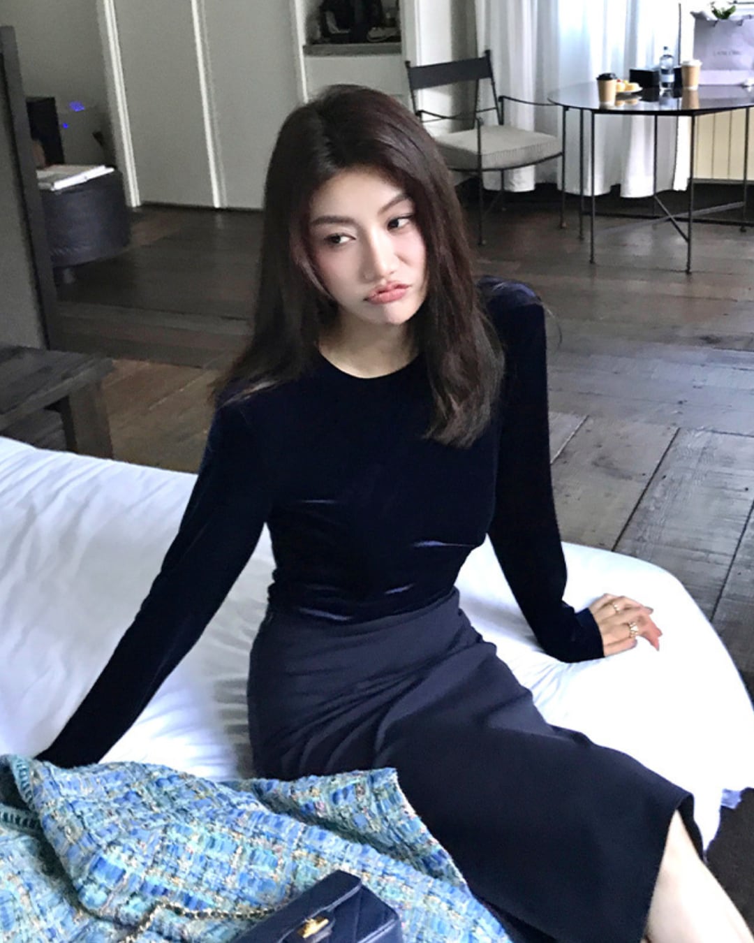 #ベロアトップス #ドレープトップス #光沢感 #大人コーデ #秋冬ファッション #華やかコーデ
