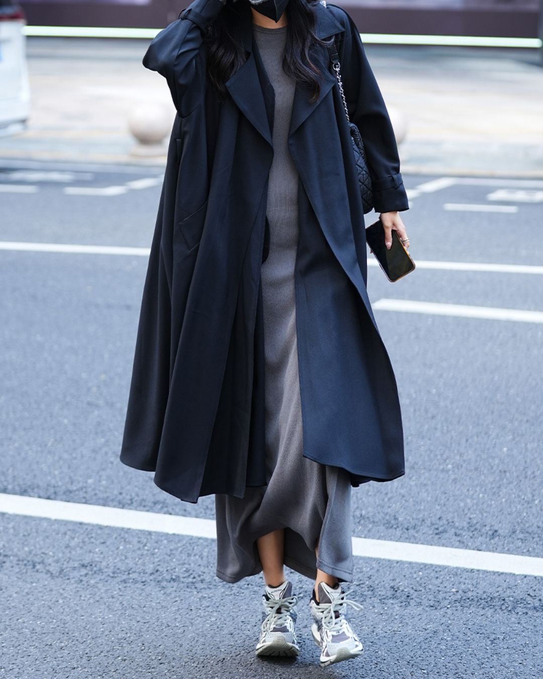 #ロングワンピース #Aライン #高ウエスト #コットン混 #シンプルスタイル #ライトグレー