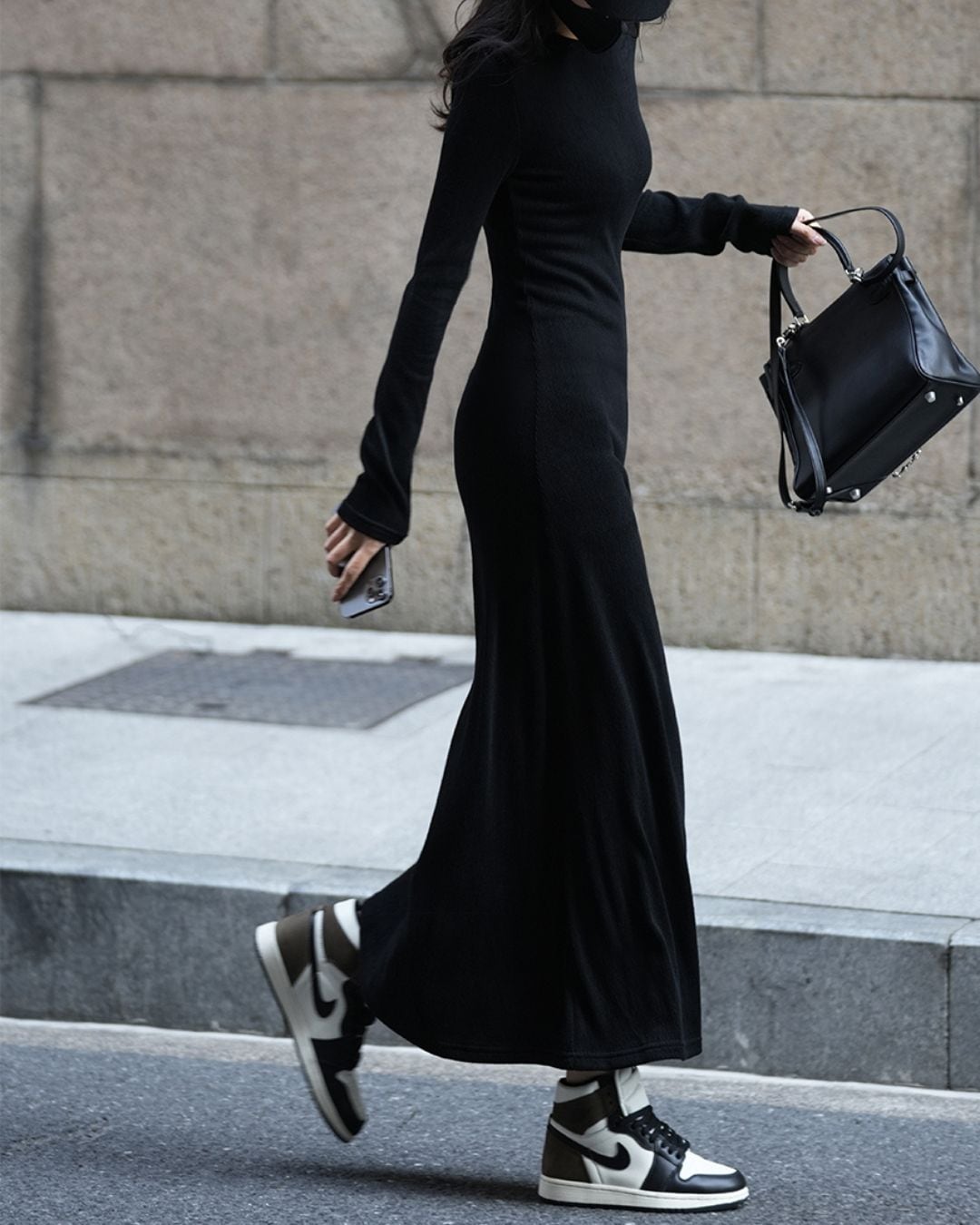 滑らかな肌触りのコットン混素材を使用した、Aラインシルエットのロングワンピース。程よいフィット感と高めのウエスト位置がスタイルアップを叶えてくれます。シンプルながらも計算された美シルエットで、ストリートからキレイめまで幅広く活躍。春にぴったりな1枚です。