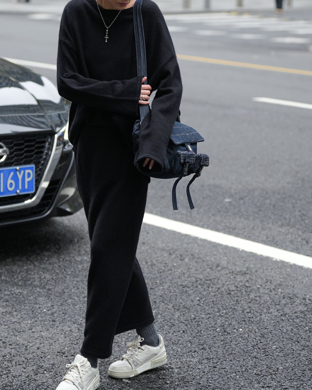 #セットアップ #ルーズシルエット #ラウンドネック #長袖 #ニットアップ #ウールミックス