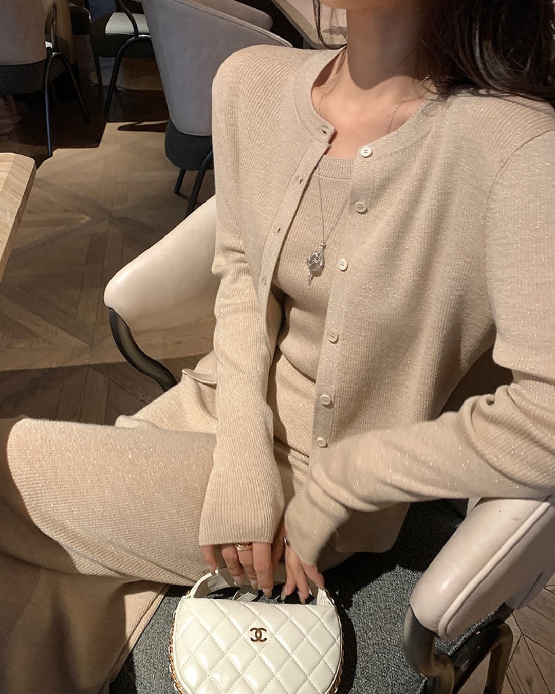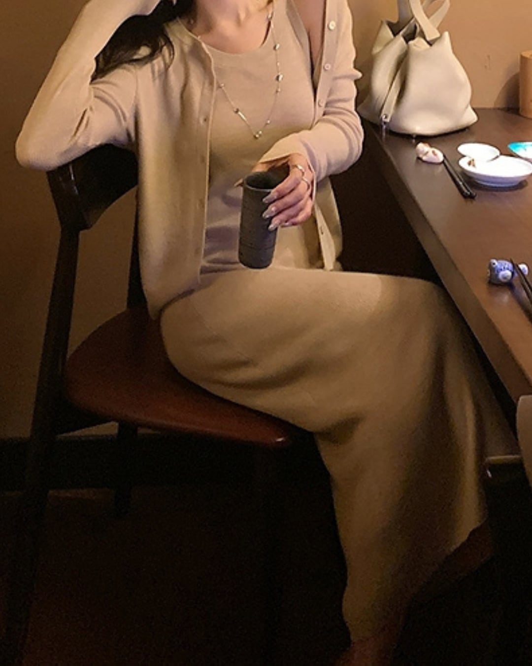 #ラメニット #セットアップ #カーディガン付き #ロングワンピース #ニットワンピ #秋コーデ #エレガントスタイル