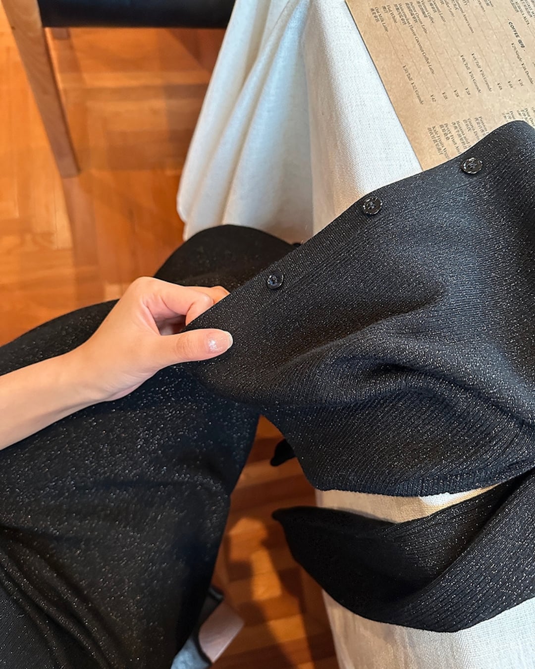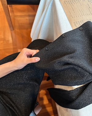 繊細なラメがきらめく大人上品なニットセットアップ。ロング丈のタイトワンピースと、同素材の開きカーディガンの2点セット。立体感のあるヤンツーファブリックと、控えめな光沢のある金銀糸がエレガントに映える一着。女性らしさと華やかさを両立させた秋の主役アイテムです。