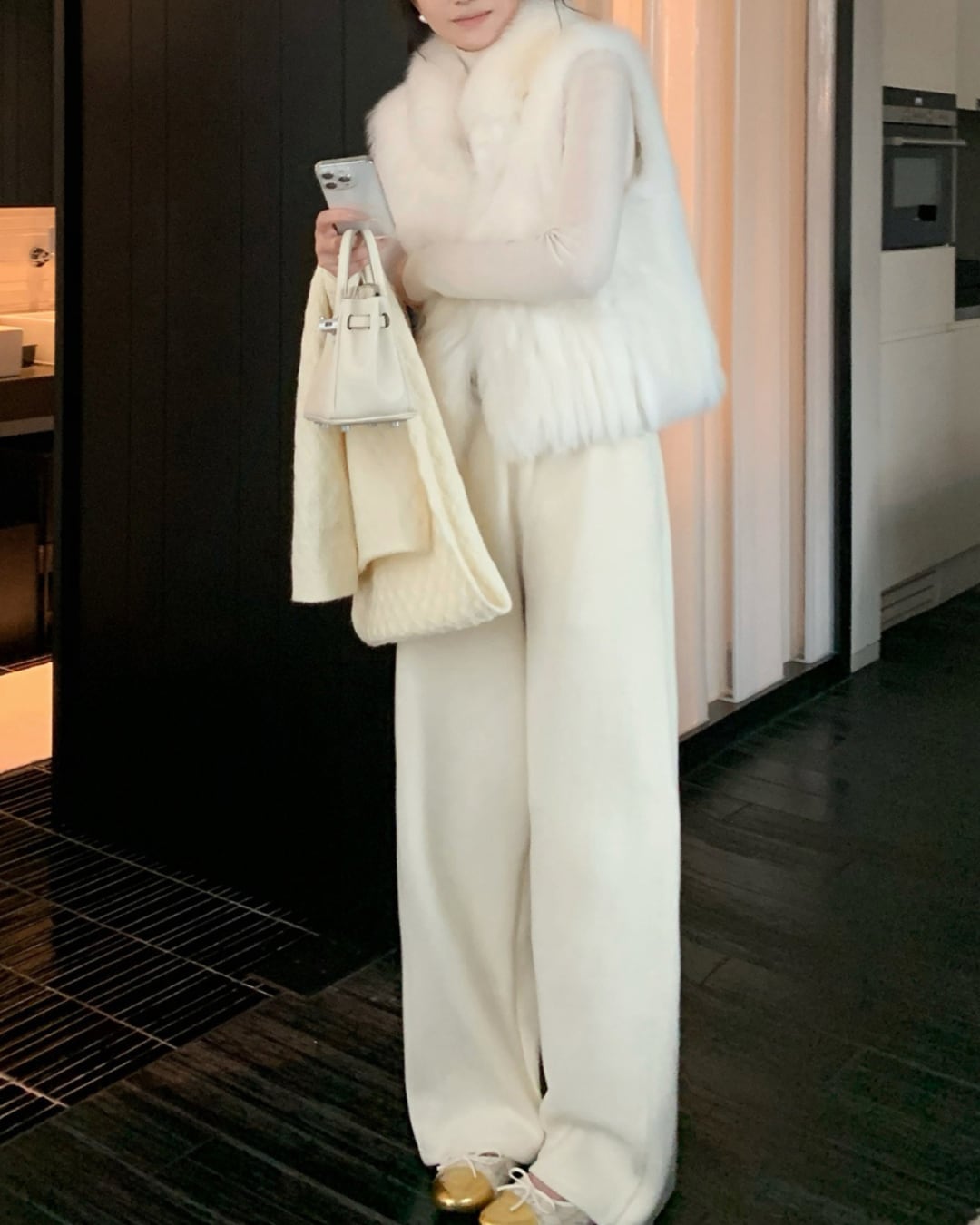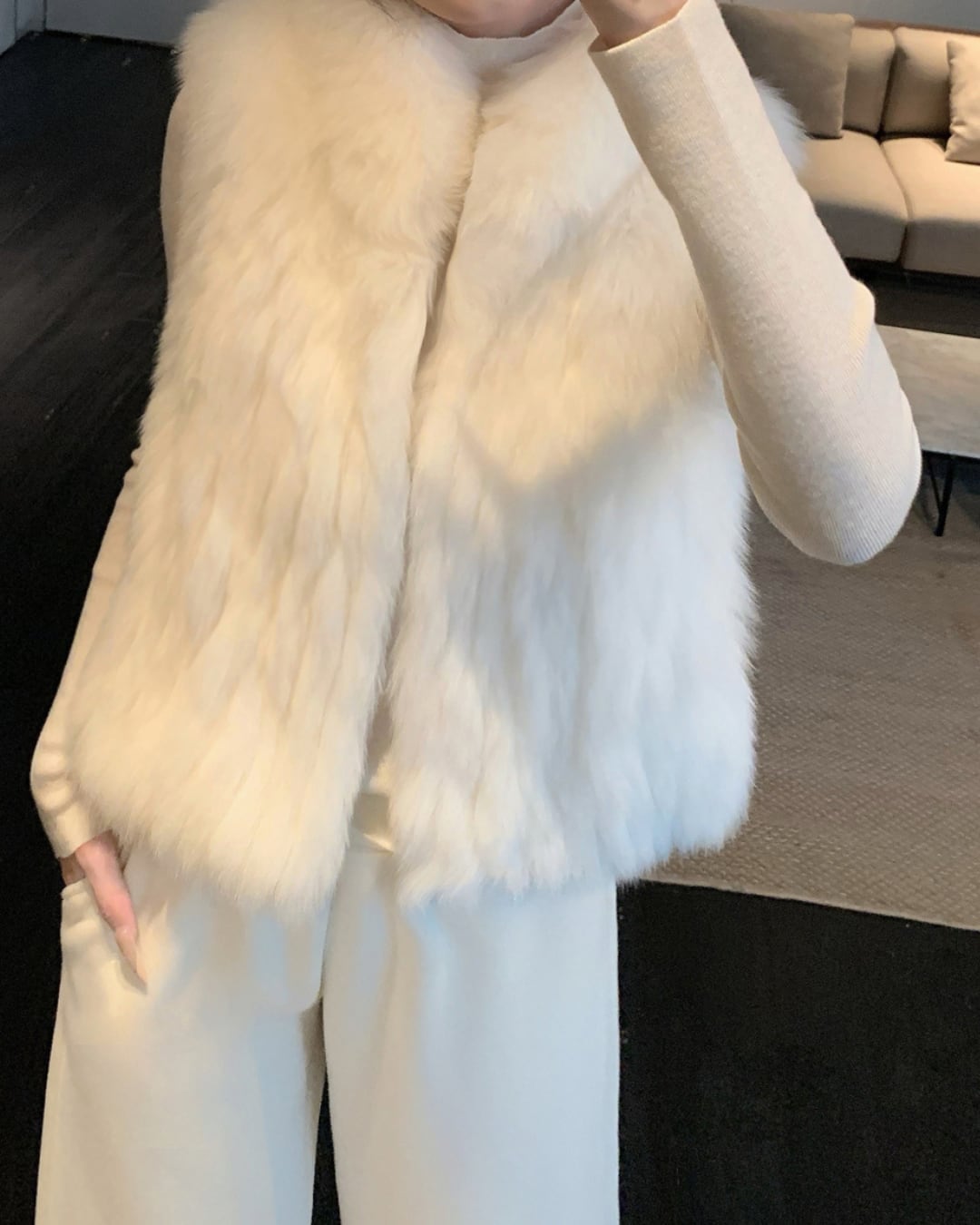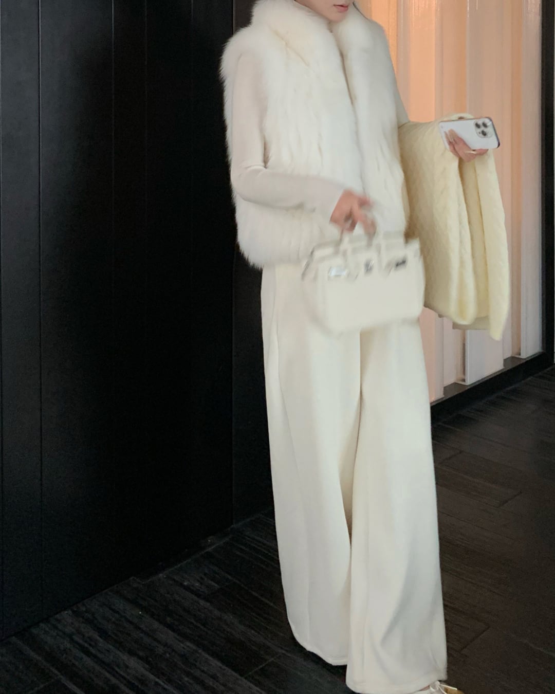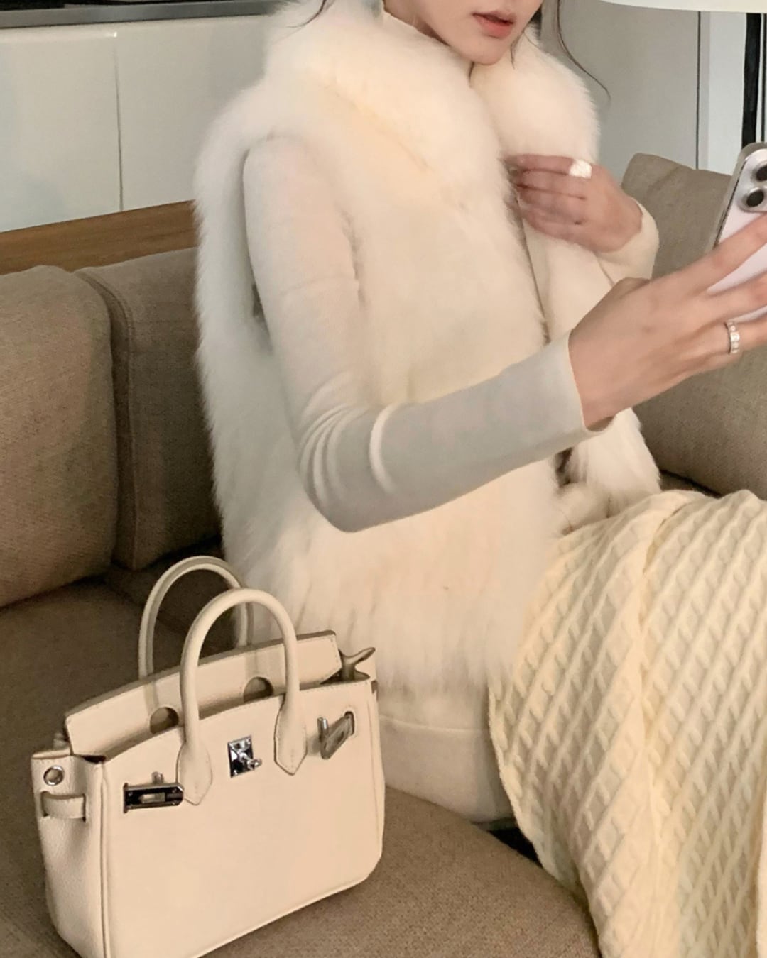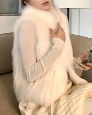 ふわっと贅沢なボリューム感が魅力の、ミルキーホワイトのフォックスファーベスト。リュクスな艶感と縦のラインがスタイルアップ効果を発揮。秋冬のレイヤードコーデに華やかさを添える1枚です。