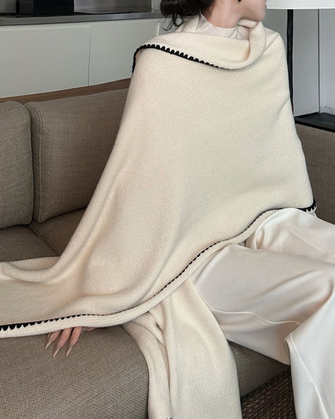 ゆったりとしたシルエットに、ブラックの縁取りがアクセントになったロングマフラー。さらりと羽織るだけでスタイリングが決まる、洗練された印象のアイテムです。軽やかで柔らかい素材感で、秋口のライトアウターとしても大活躍。大判サイズで体を包み込み、リラックス感のある着心地も魅力です。
