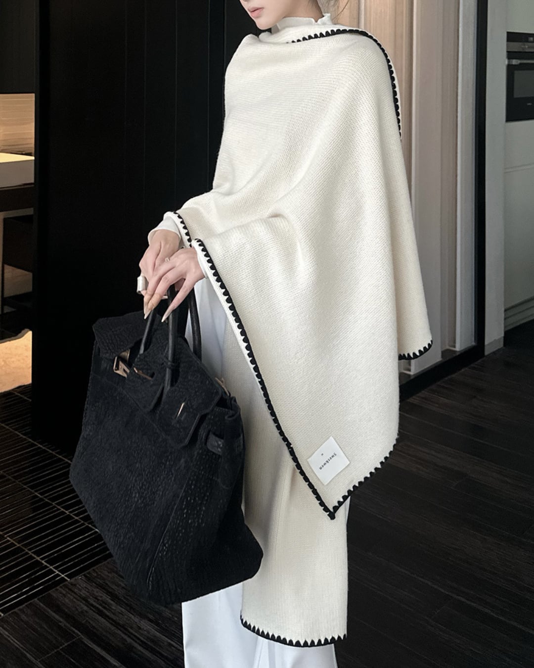 #ポンチョコーデ #バイカラー #ロングポンチョ #ライトアウター #大判ストール #秋アウター