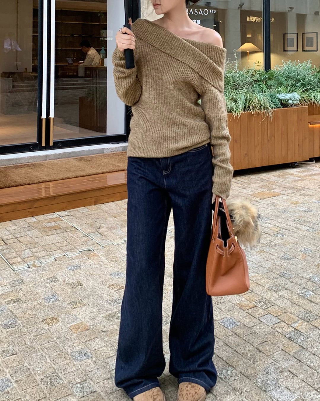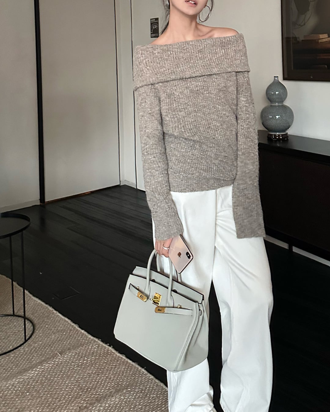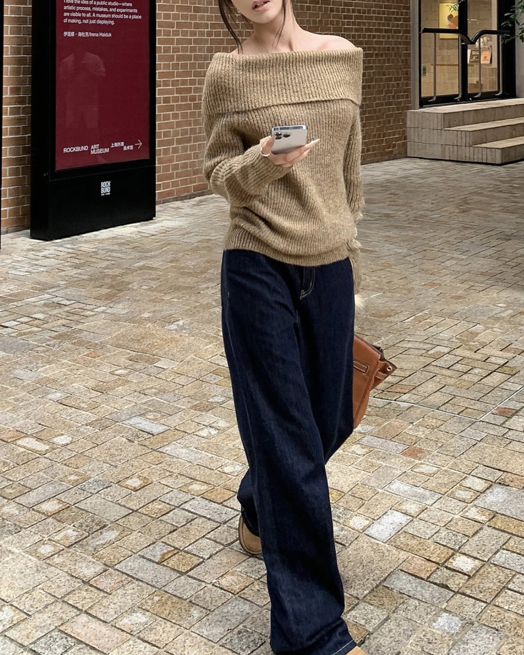 #オフショルダー #ニットトップス #デコルテ見せ #フェミニンコーデ #大人カジュアル #ワイドネック