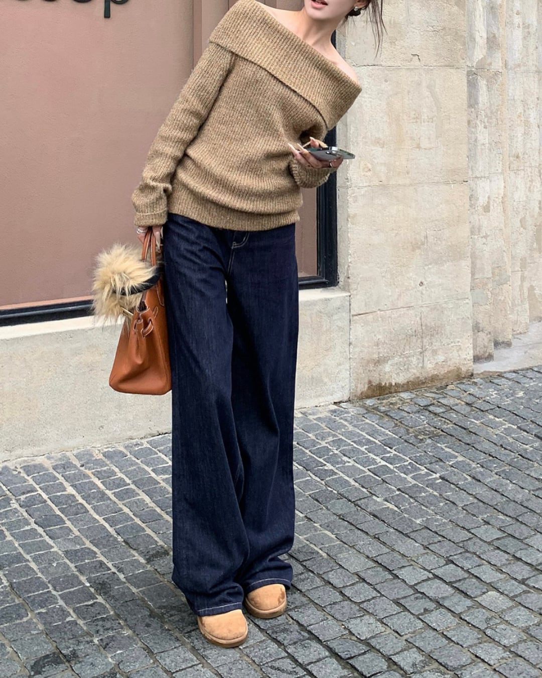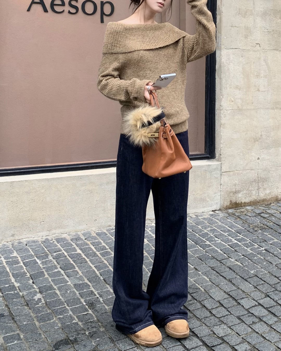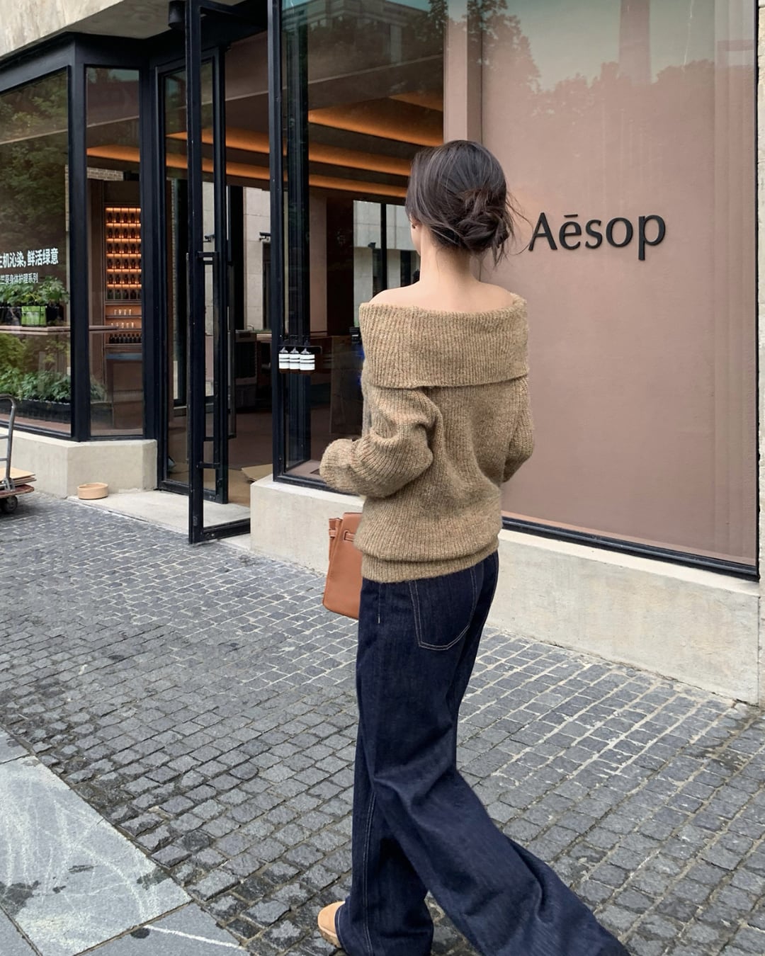 #オフショルダー #ニットトップス #デコルテ見せ #フェミニンコーデ #大人カジュアル #ワイドネック