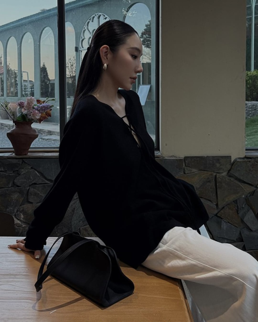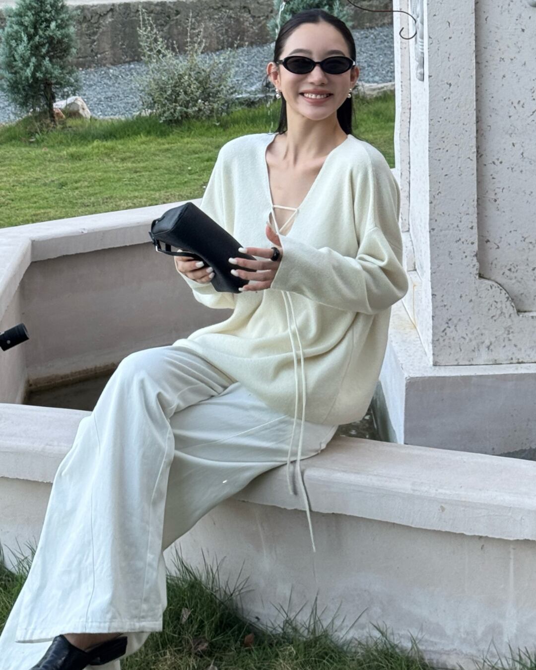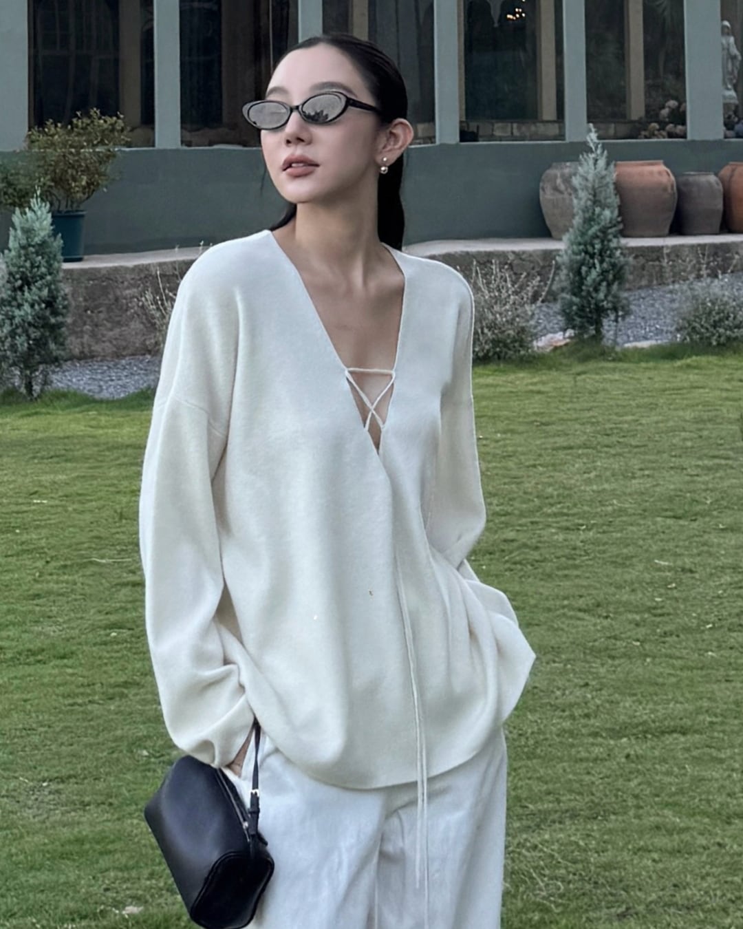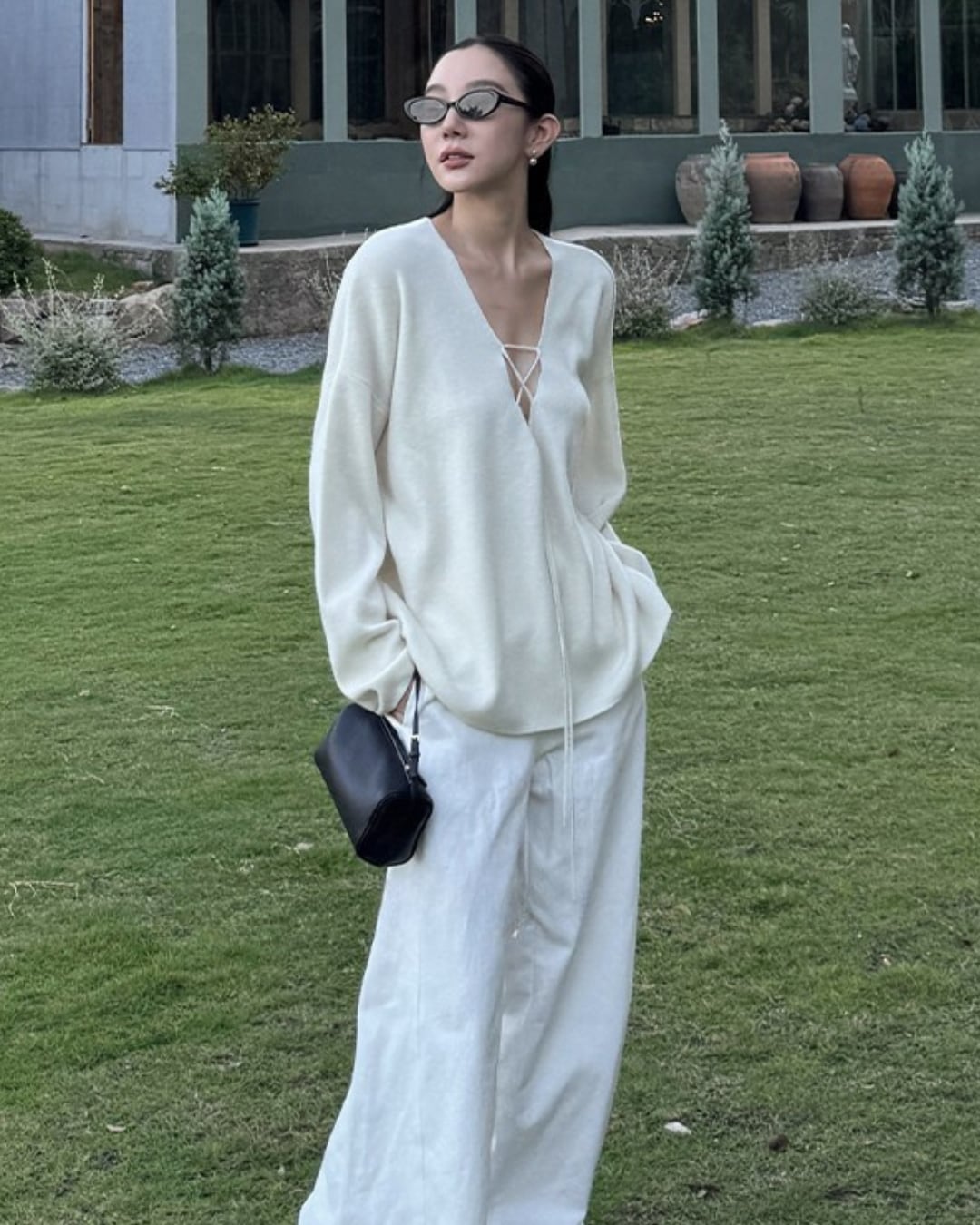 #レースアップ #ウールニット #Vネックトップス #オーバーサイズ #抜け感コーデ #秋冬スタイル