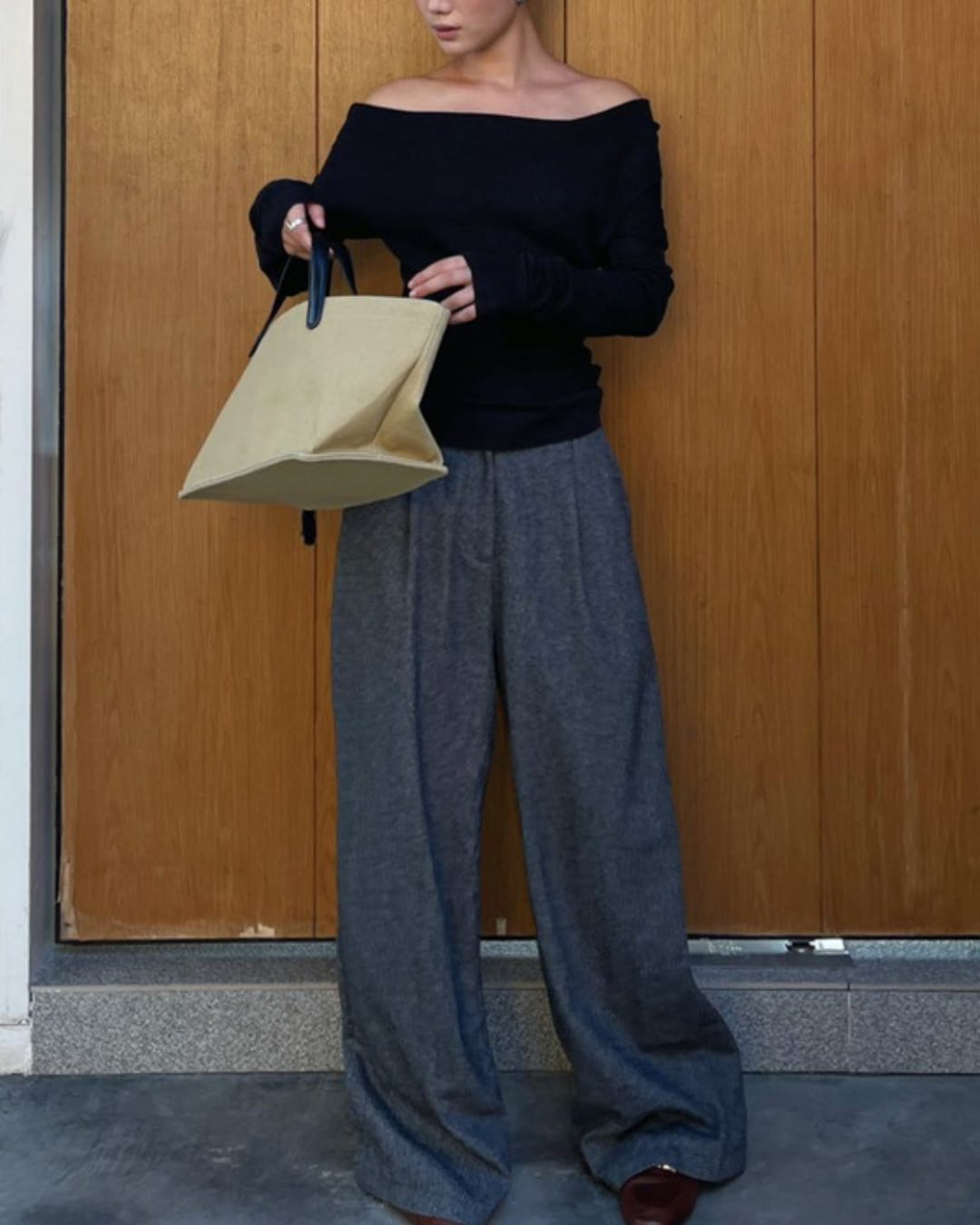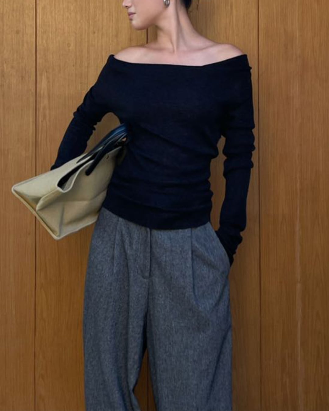 #オフショルダー #デコルテ魅せ #長袖トップス #スリムフィット #韓国ファッション #シンプルコーデ #大人カジュアル
