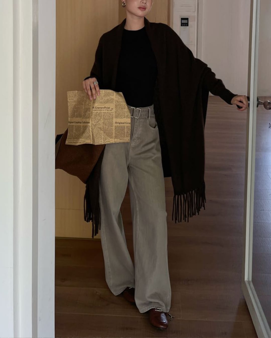#グレージュパンツ #ハイウエスト #ワイドデニム #脚長効果 #秋冬コーデ #カジュアル #大人デニム