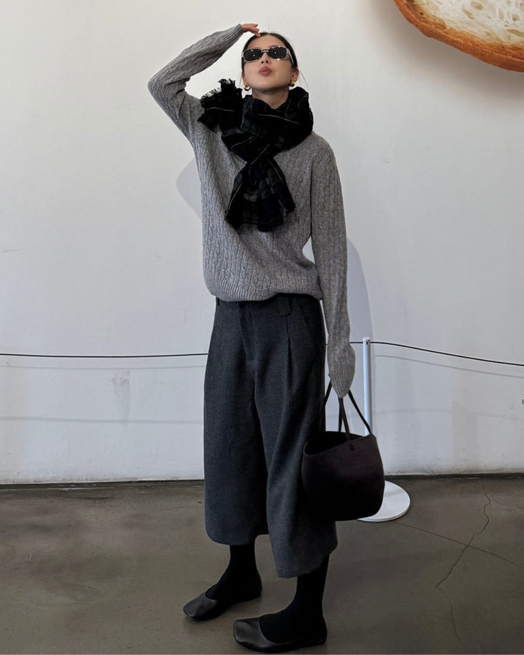 #チャコールグレー #ワイドパンツ #ハイウエスト #ストレートシルエット #秋冬コーデ #大人カジュアル