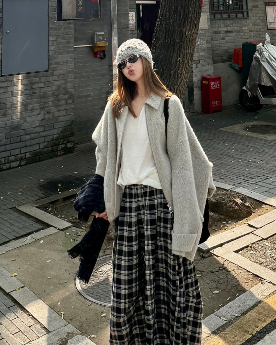 #ウールトップス #Vネック #ミニマルコーデ #オーバーサイズ #長袖トップス #秋冬カジュアル #柔らか素材