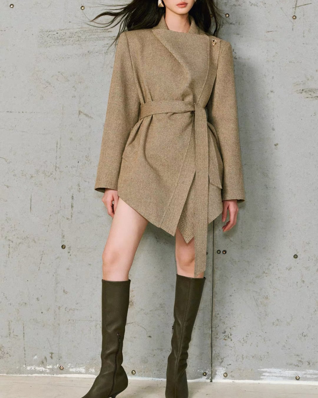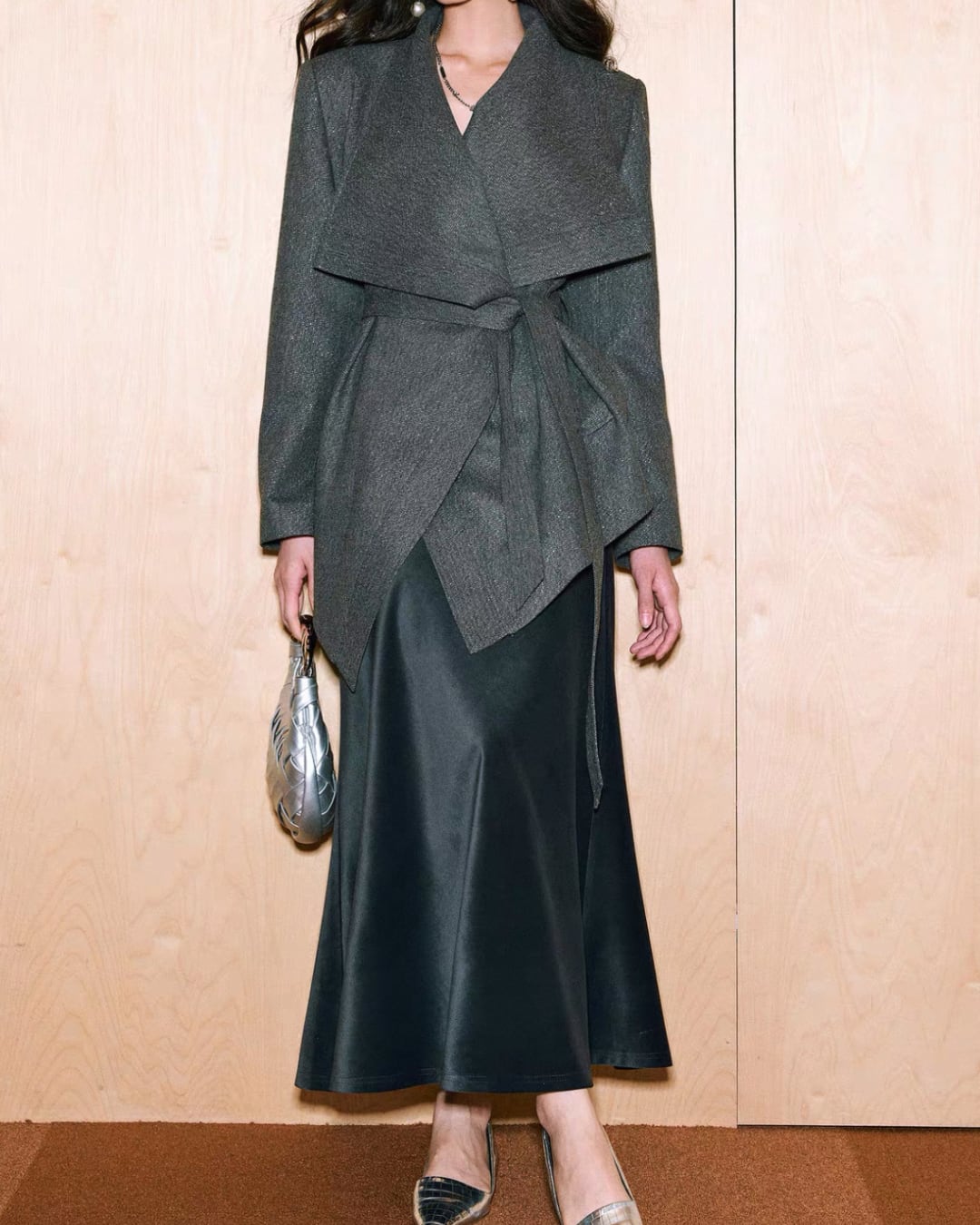 上品なラメが織り込まれた、表情豊かなテクスチャー素材が魅力のロングコート。ウエストベルト付きで2WAYの着こなしが楽しめるデザイン。大きめのラペルとリラックス感のあるシルエットが、こなれた大人の秋冬スタイルを演出してくれます。