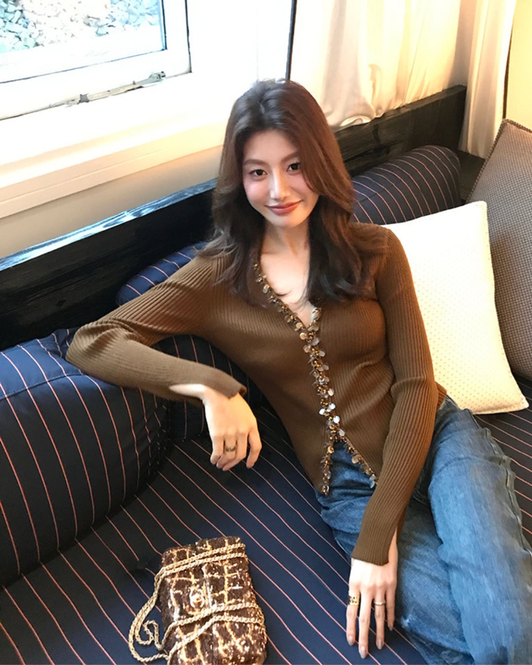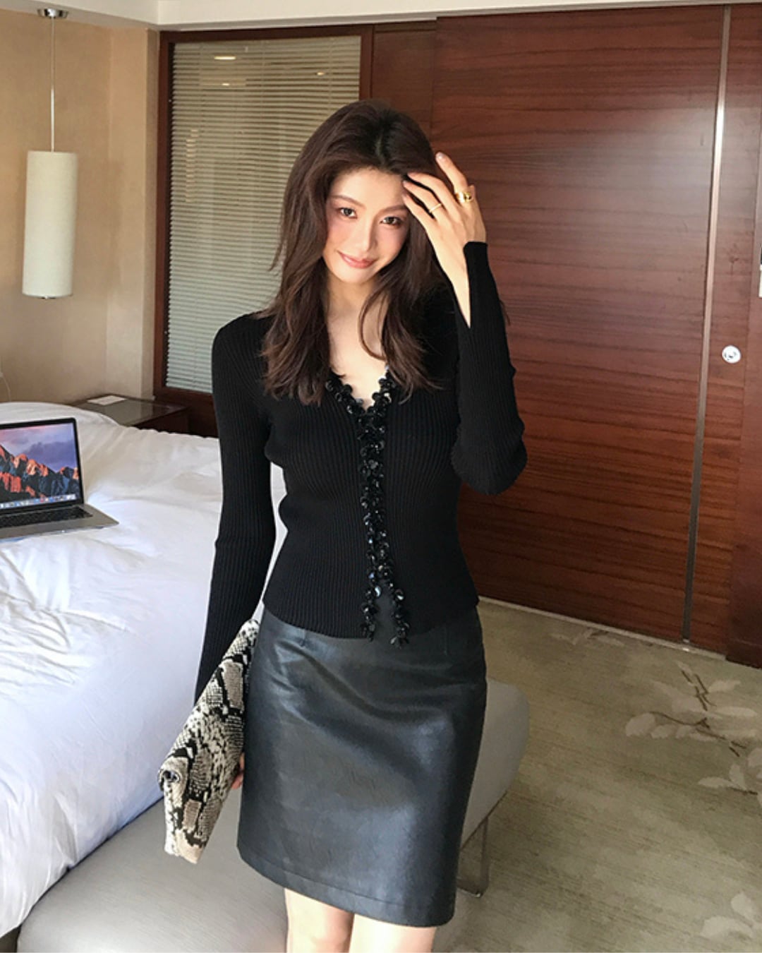 #Vネック #スパンコール #リブニット #フィット #長袖 #秋冬トップス