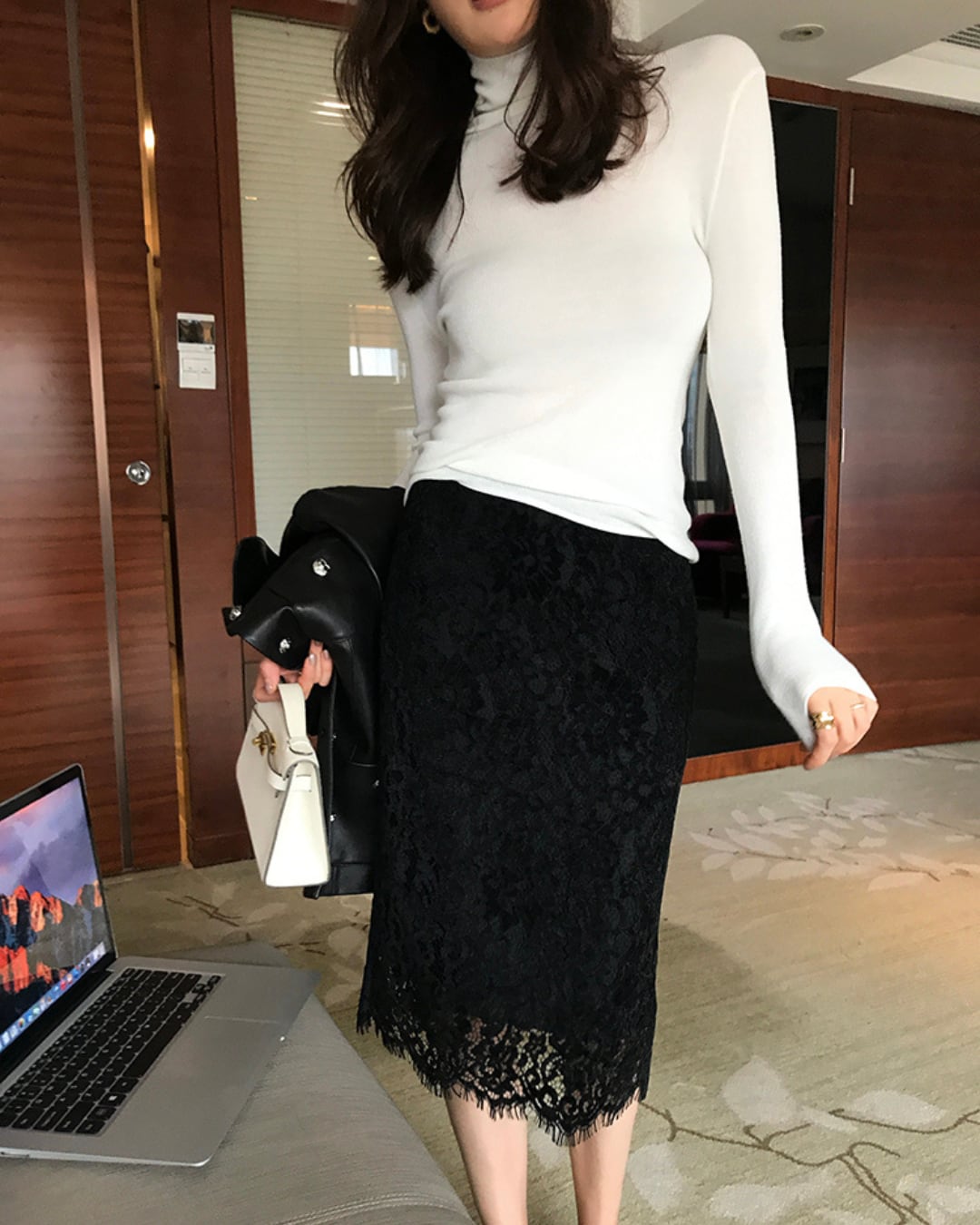 #レース #タイトスカート #スリット #ハイウエスト #ミディ丈 #大人上品