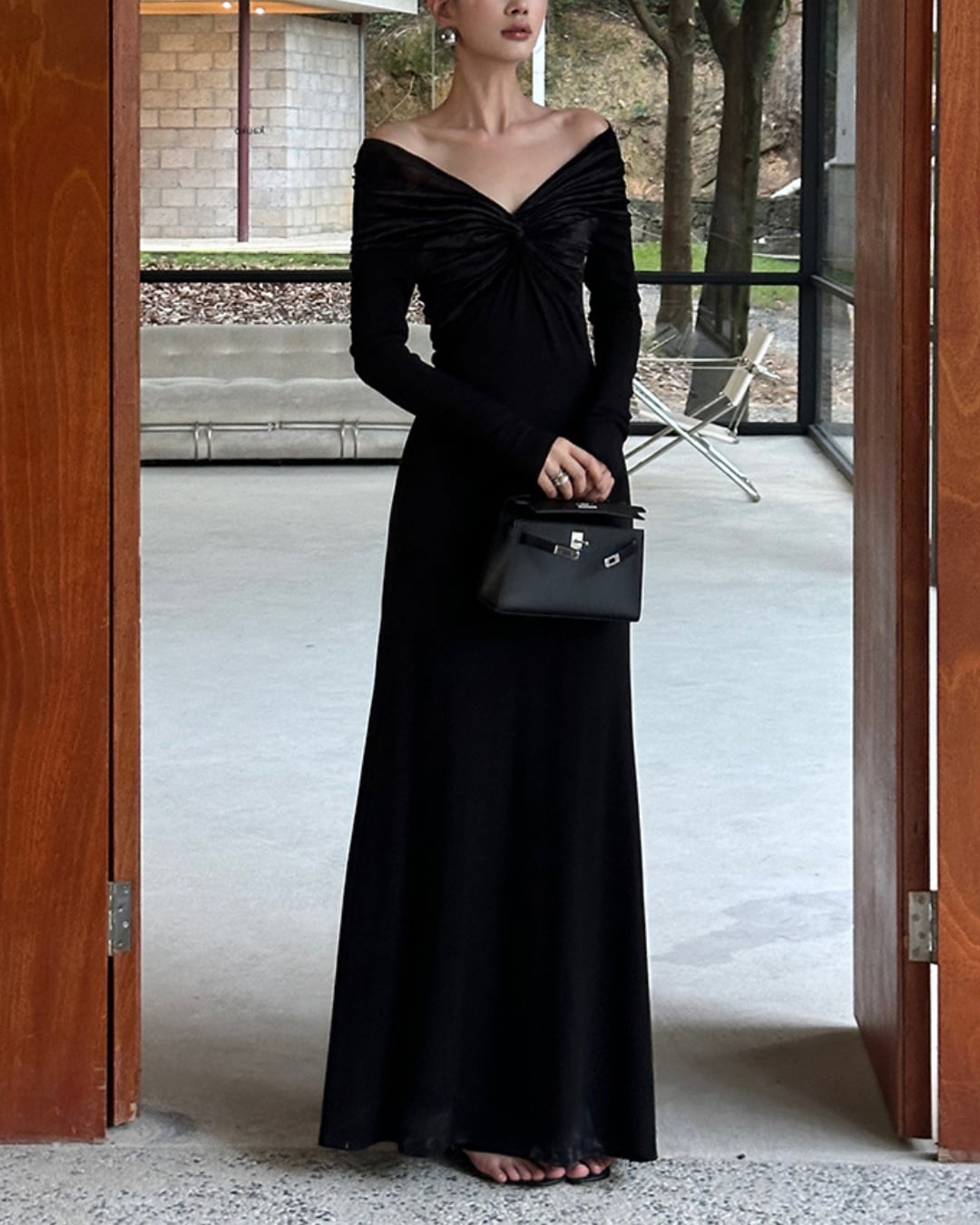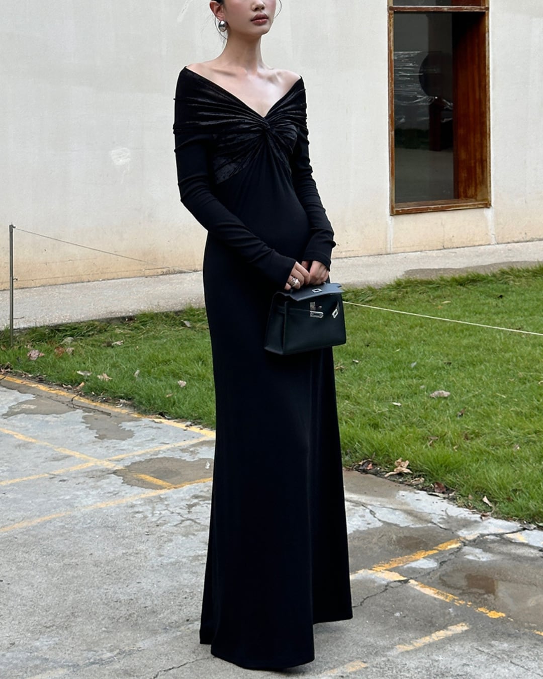 #オフショルダー #ロングワンピース #ツイストデザイン #ベルベット #エレガント #ドレッシー