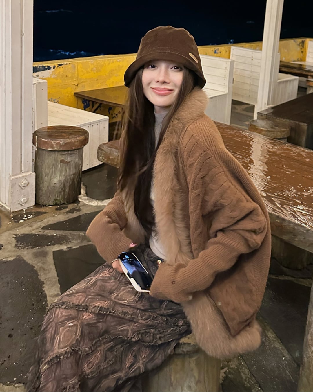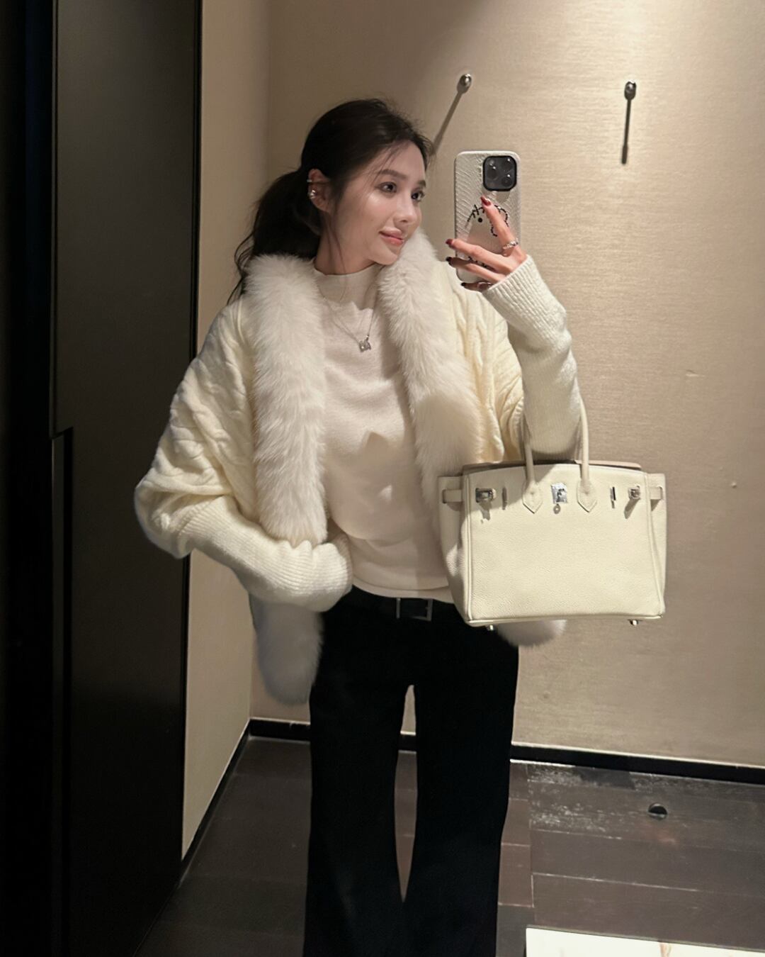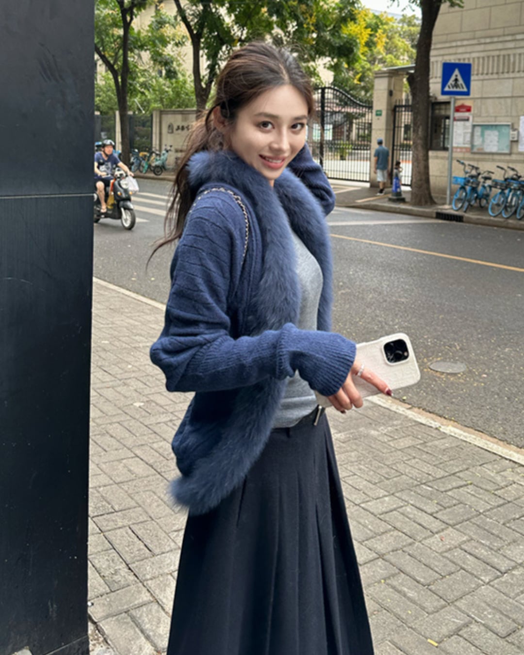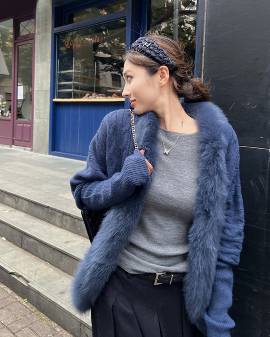 #フォックスファー #ニットカーディガン #ショート丈 #フェミニンコーデ #秋冬アウター #高級感
