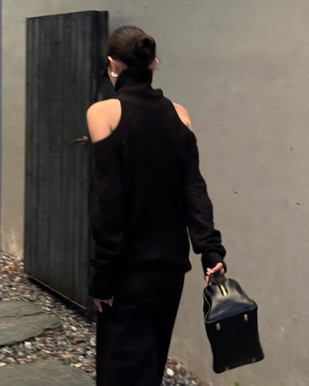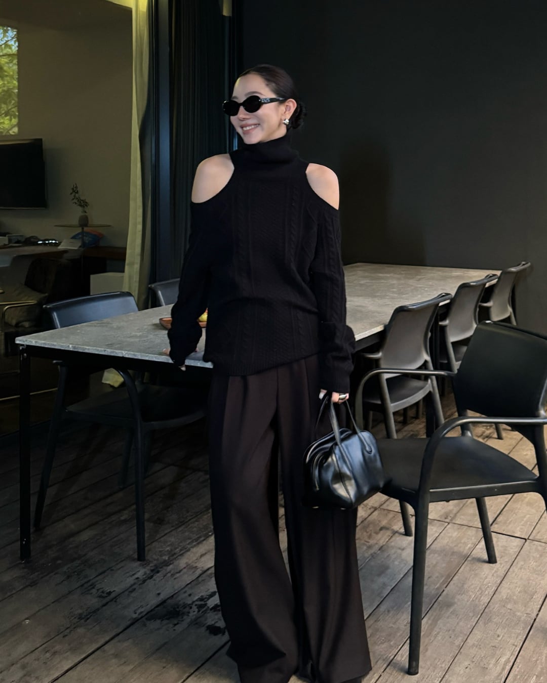 #ショルダースリット #ハイネック #ニットトップス #ケーブルニット #大人カジュアル #モード系