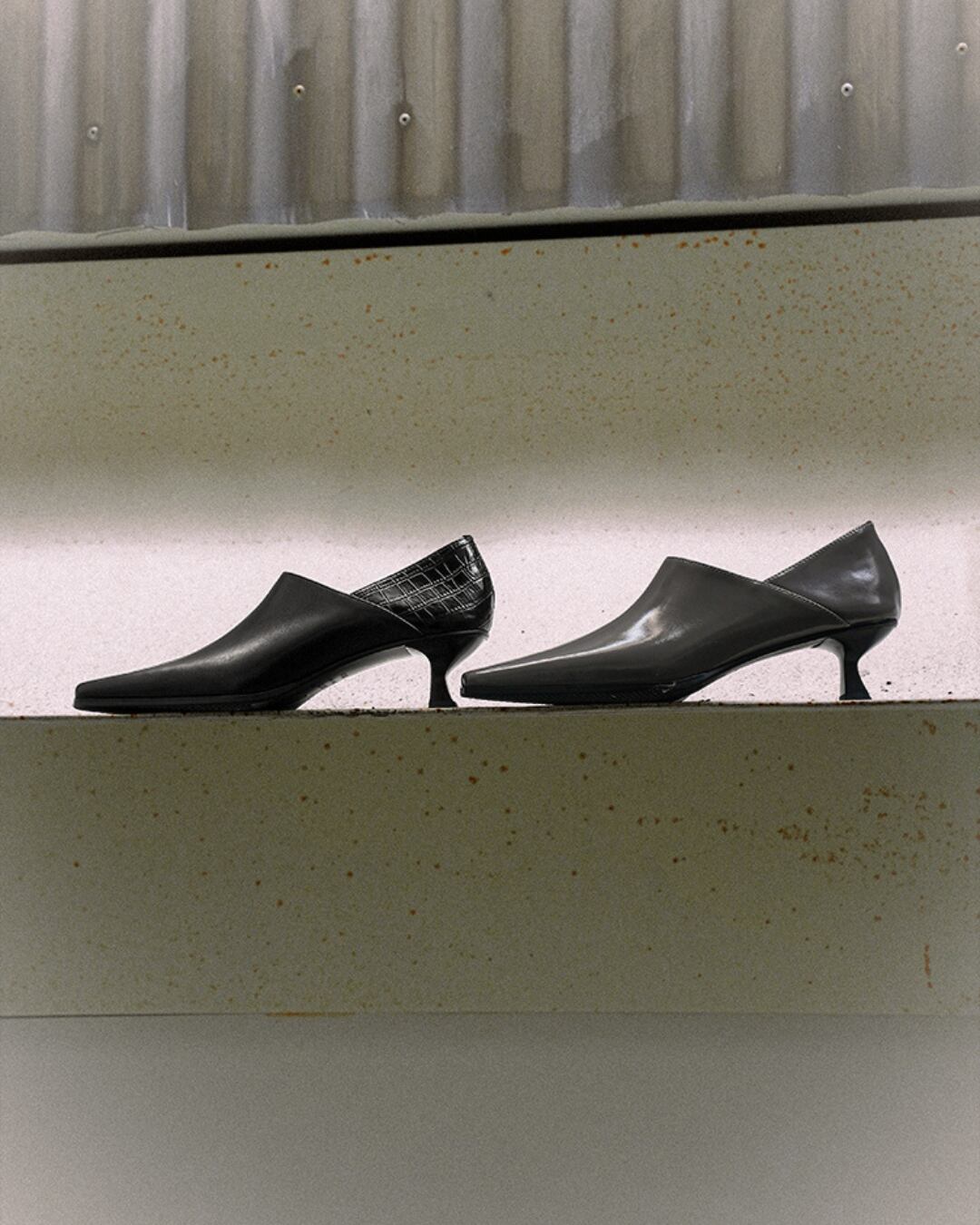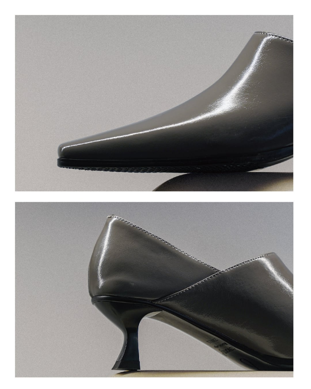 洗練されたポインテッドトゥに、5cmの華奢なヒールが魅力のレザーミュールパンプス。履き口のクロスデザインが足元に抜け感を演出し、シンプルながらもモードな雰囲気に。上質なレザーのツヤ感がコーデを格上げしてくれます。ヒール部分はしっかり安定感があり、後ろを踏んでバブーシュ風にも履ける2WAY仕様。