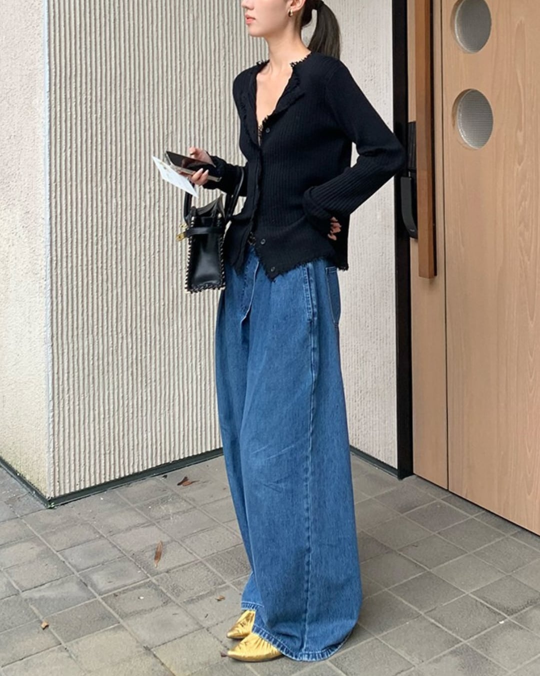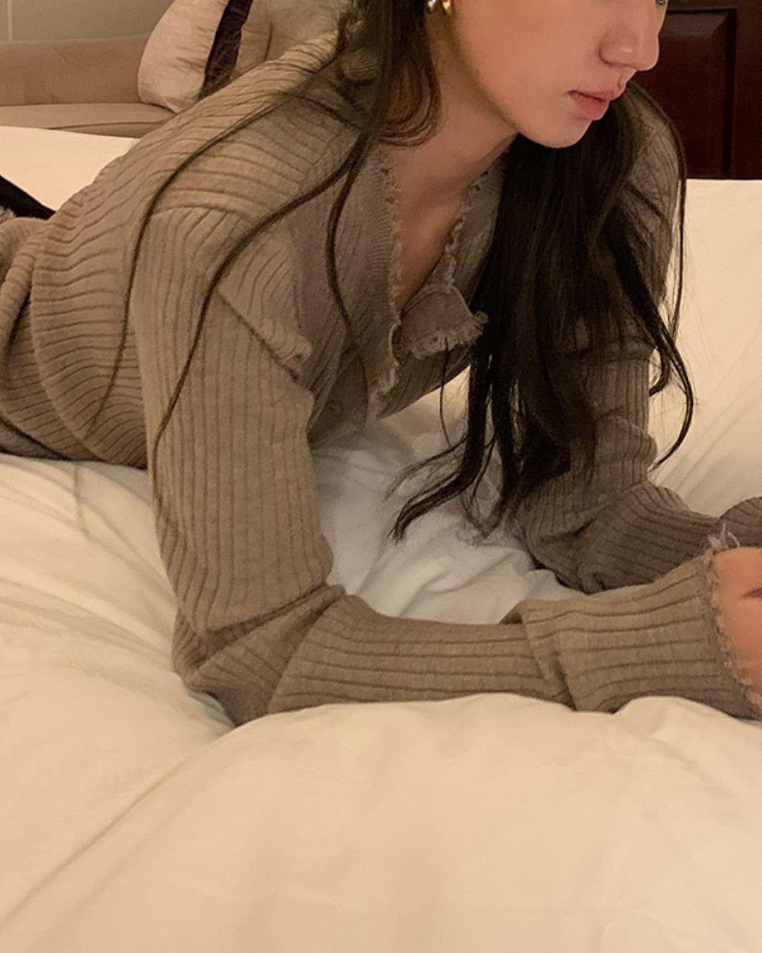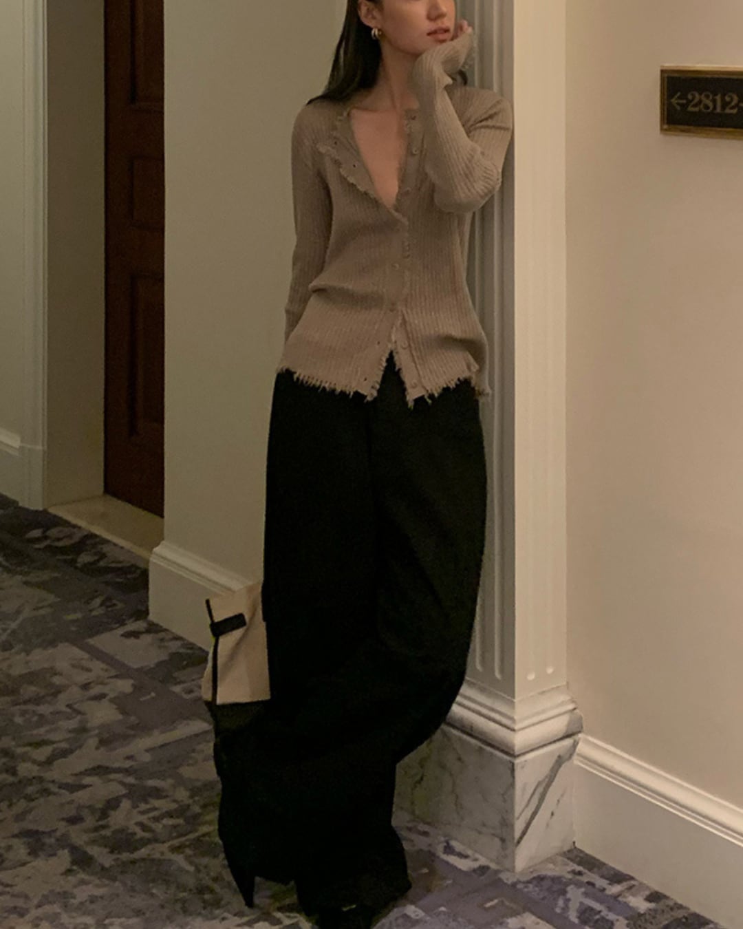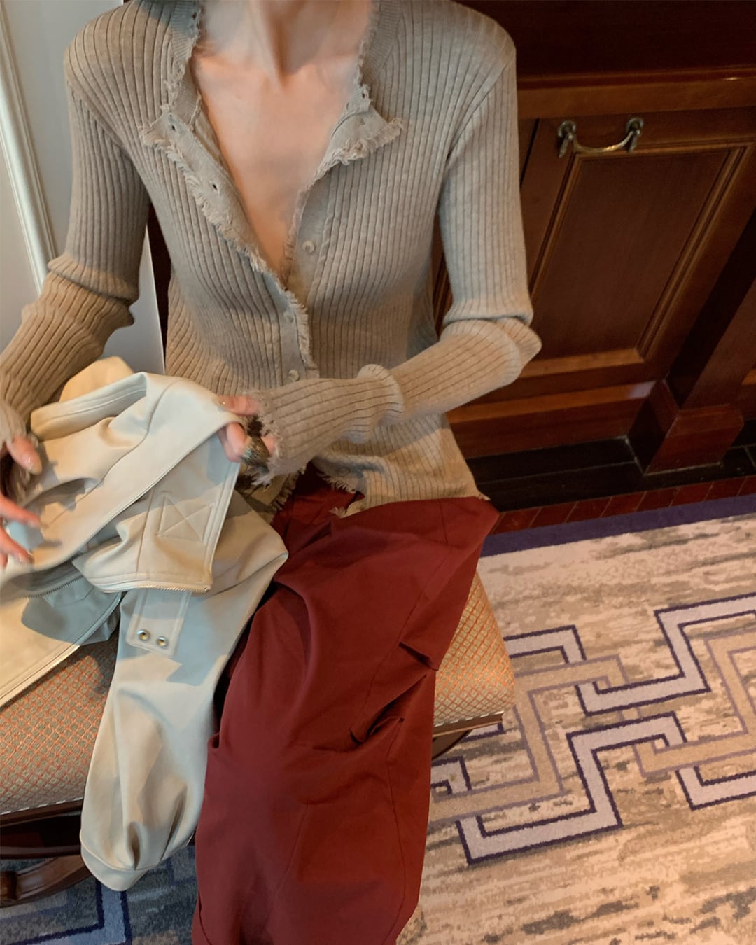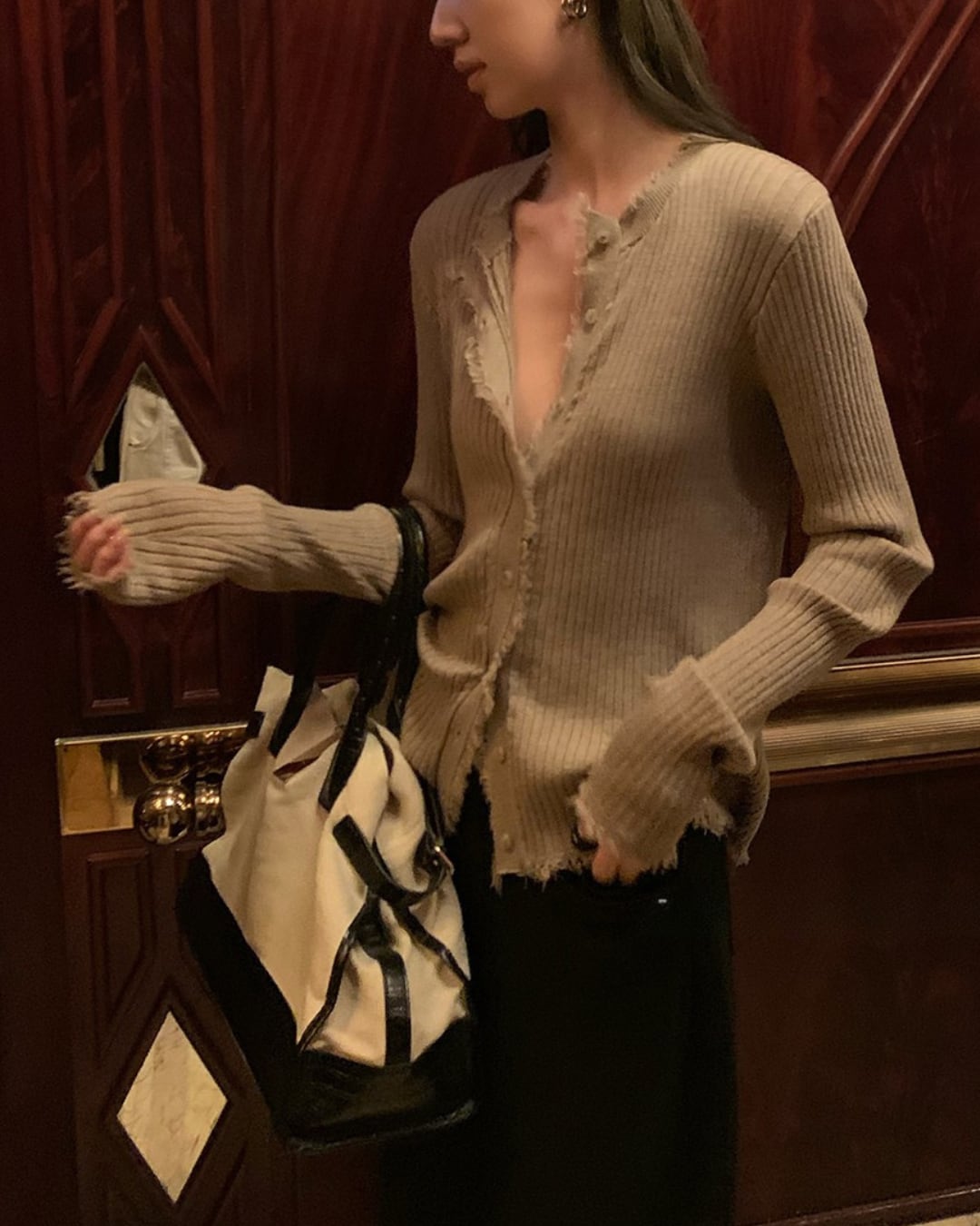 #フリンジ #リブニット #カーディガン #秋コーデ #レイヤード #抜け感