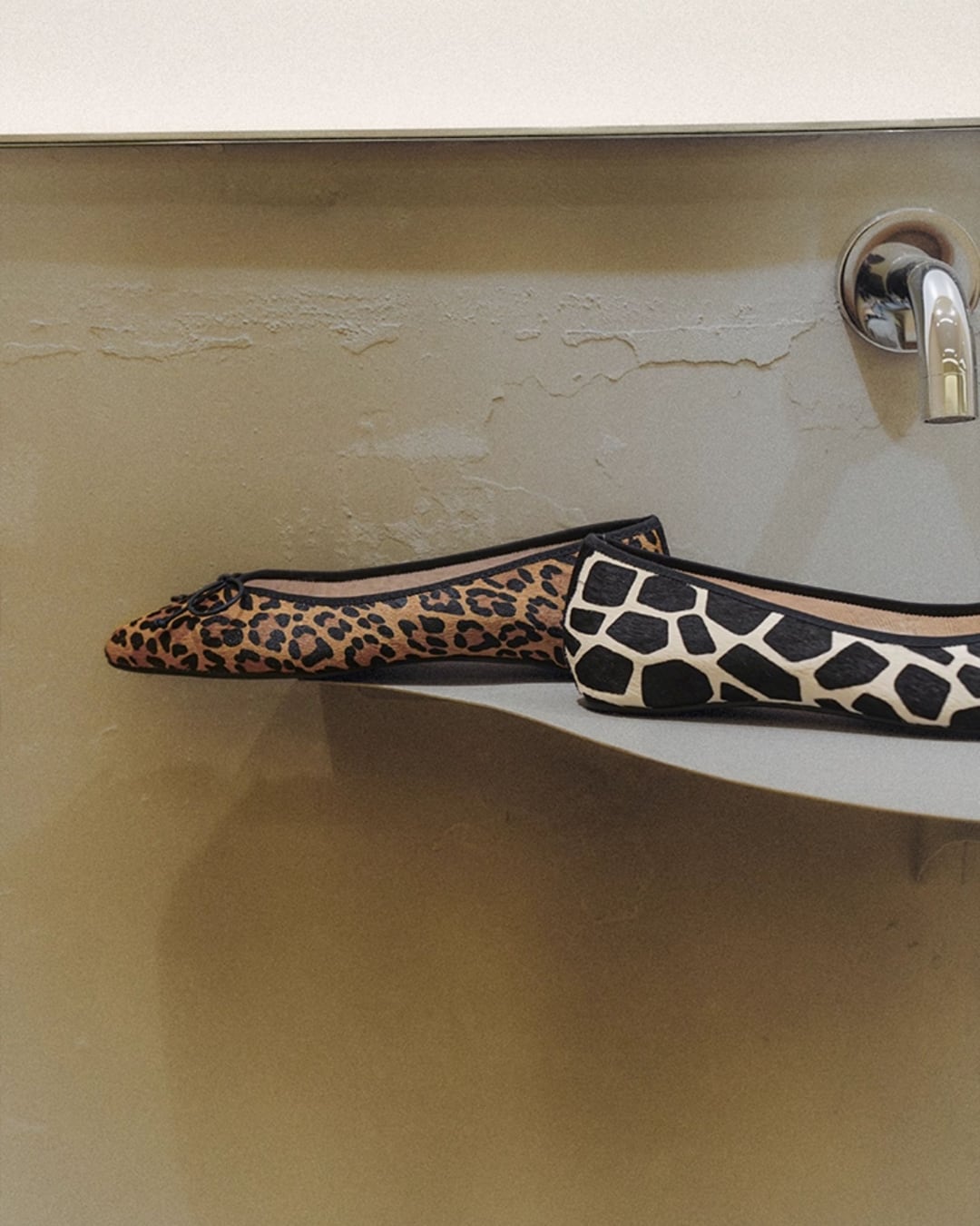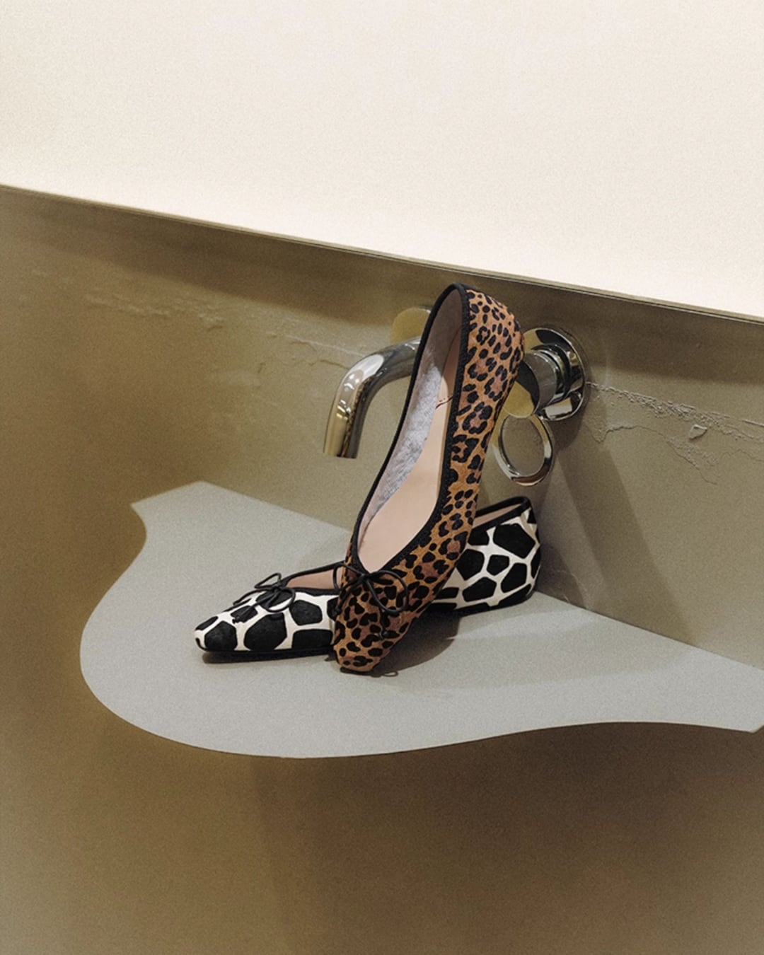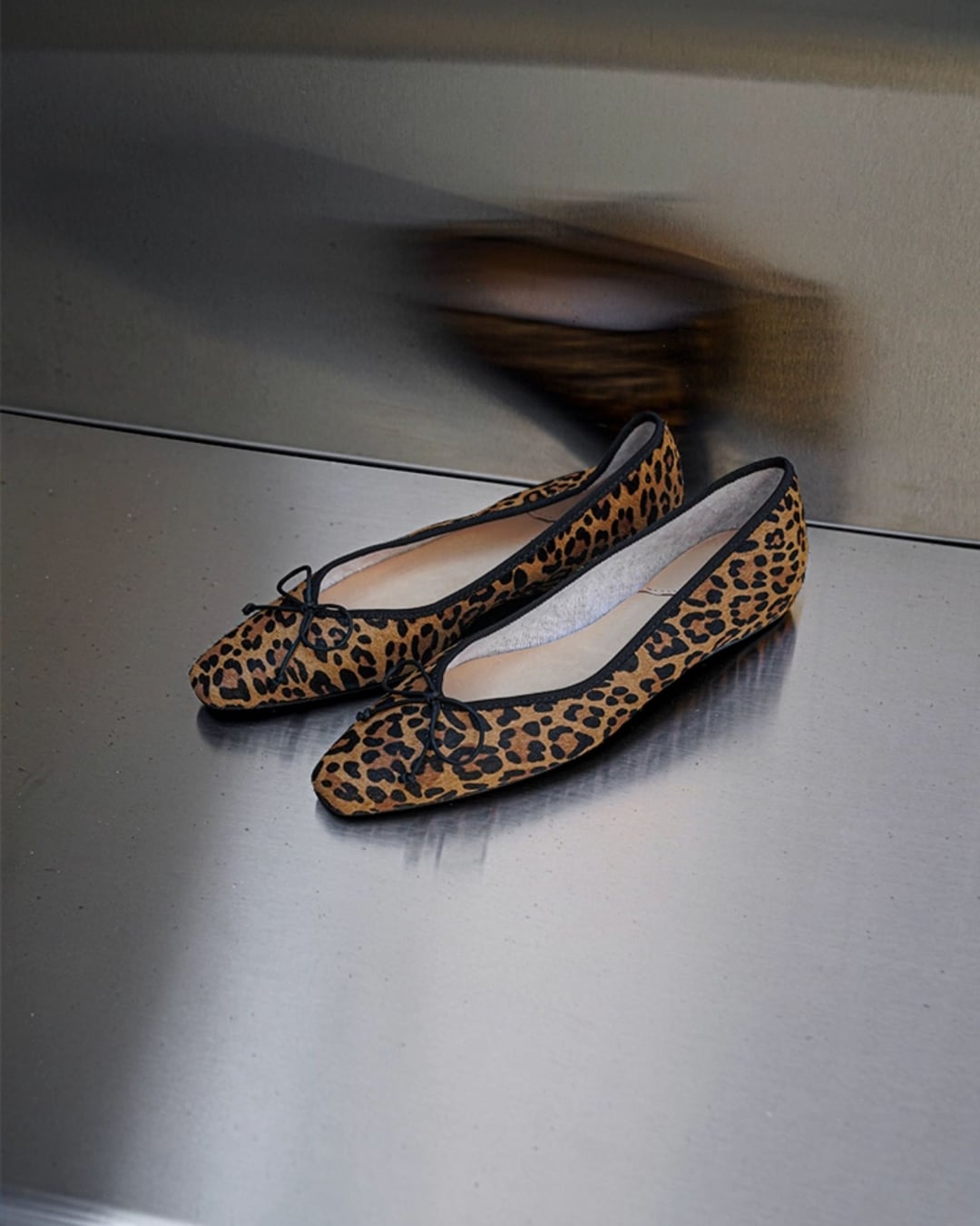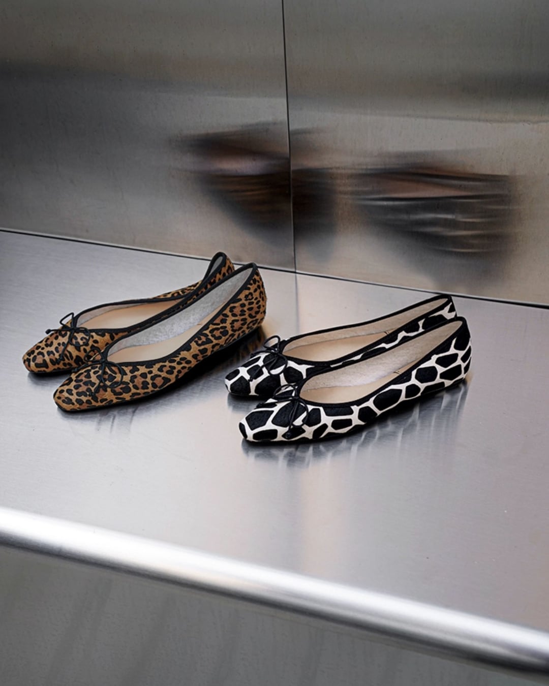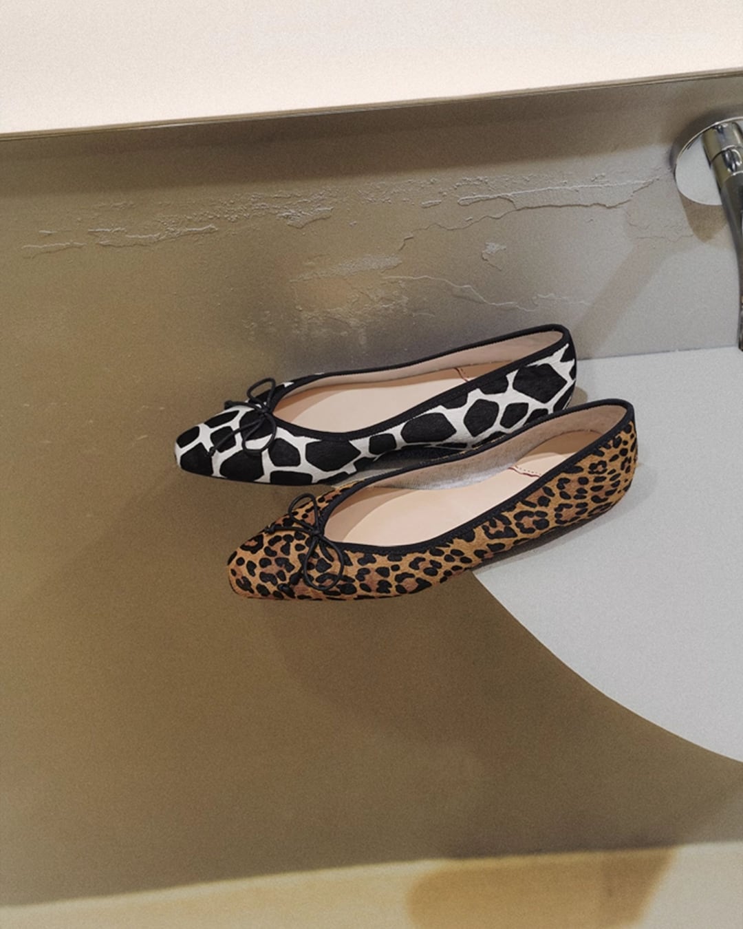 遊び心を効かせたアニマル柄のバレエシューズ。ラウンドトゥ&ローヒールで履き心地抜群ながら、目を引くプリントで足元にアクセントをプラス。スカートにもデニムにも合わせやすく、デイリーから旅行まで大活躍。春・秋の軽やかコーデにぴったりの一足です。