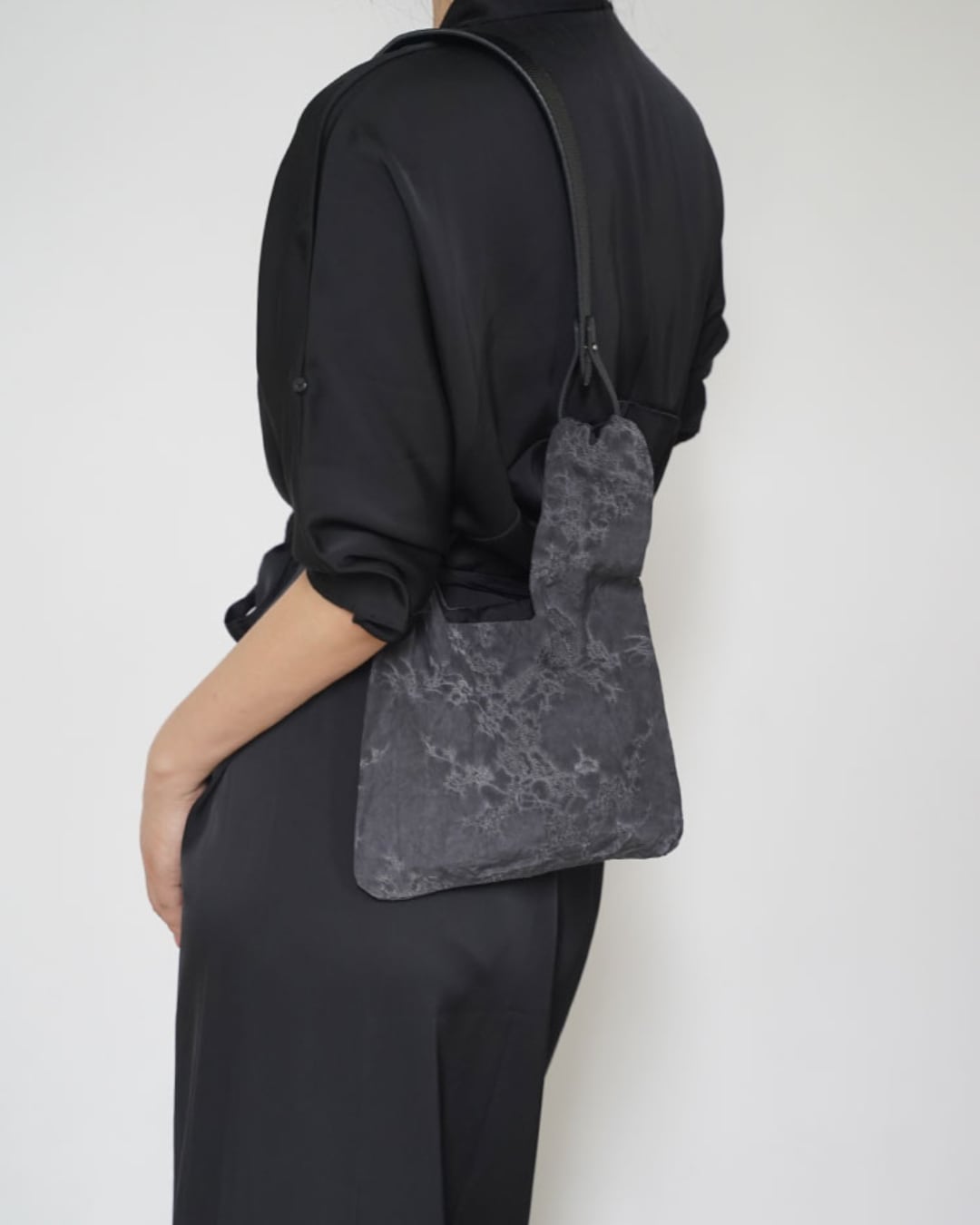 まるでアートのようなタイダイ柄が印象的なシルク素材のショルダーバッグ。非常に軽量ながら、実用性◎の一品。13cmと37cmの2種類の持ち手で、ハンドバッグとしてもショルダーとしても使用可能。独特のシワ加工と風合いが、洗練された大人のカジュアルスタイルにマッチします。