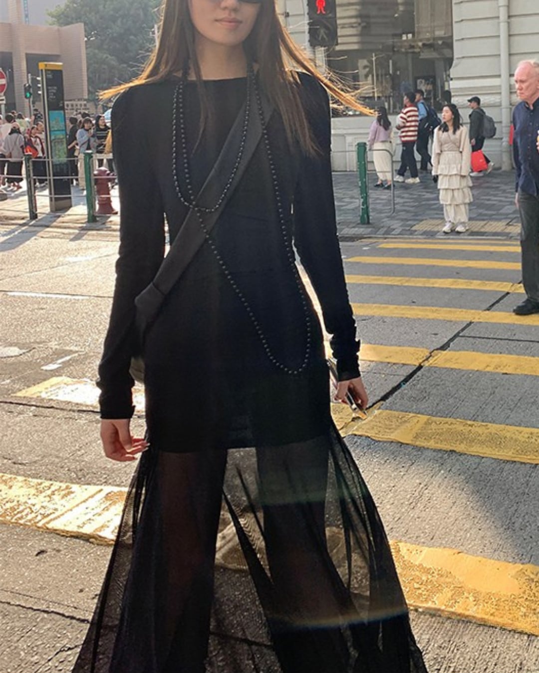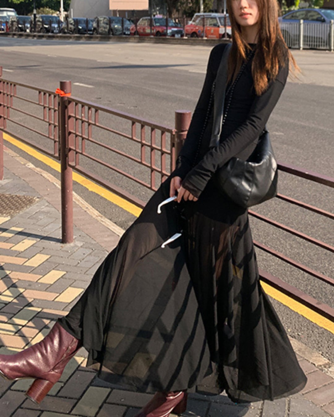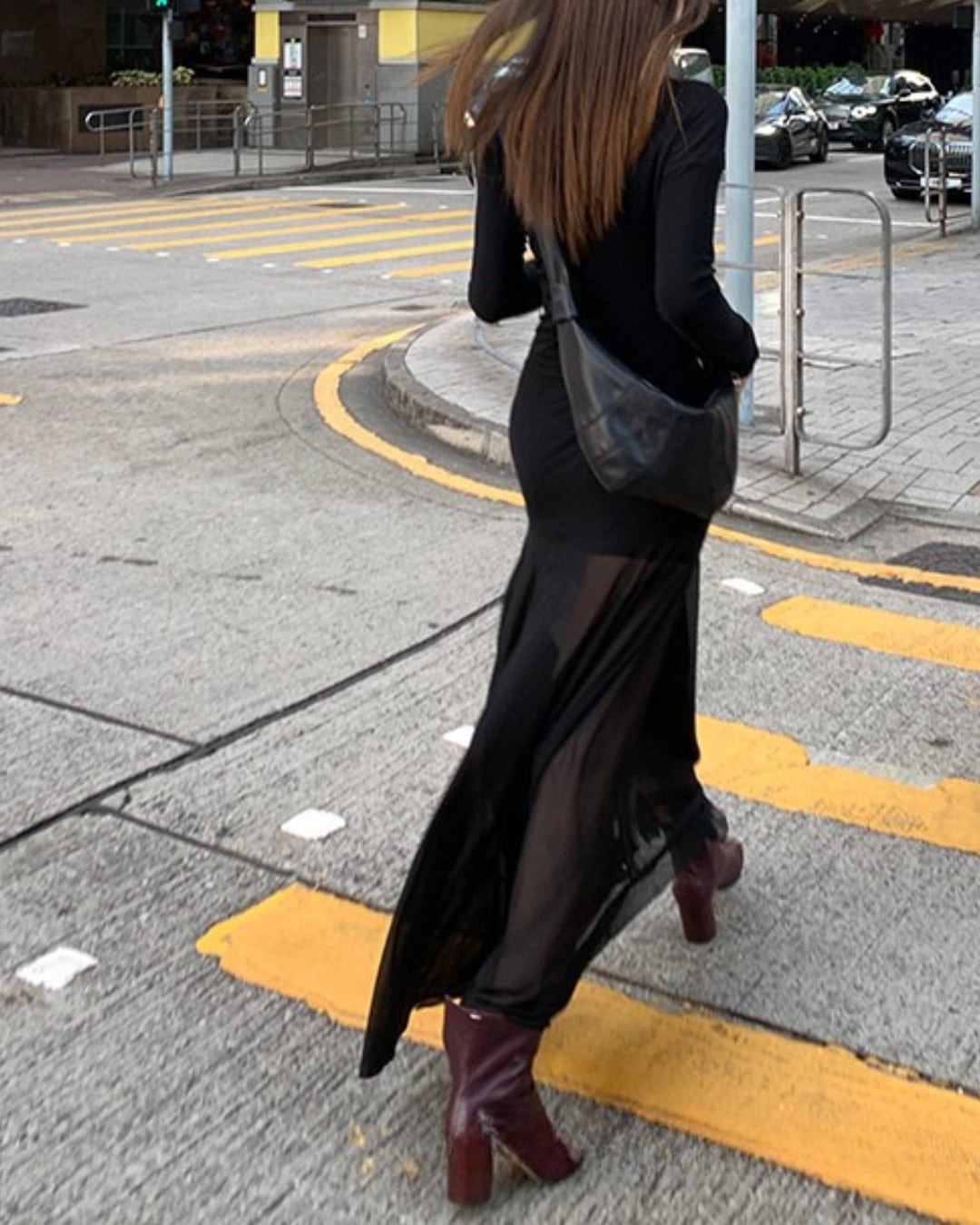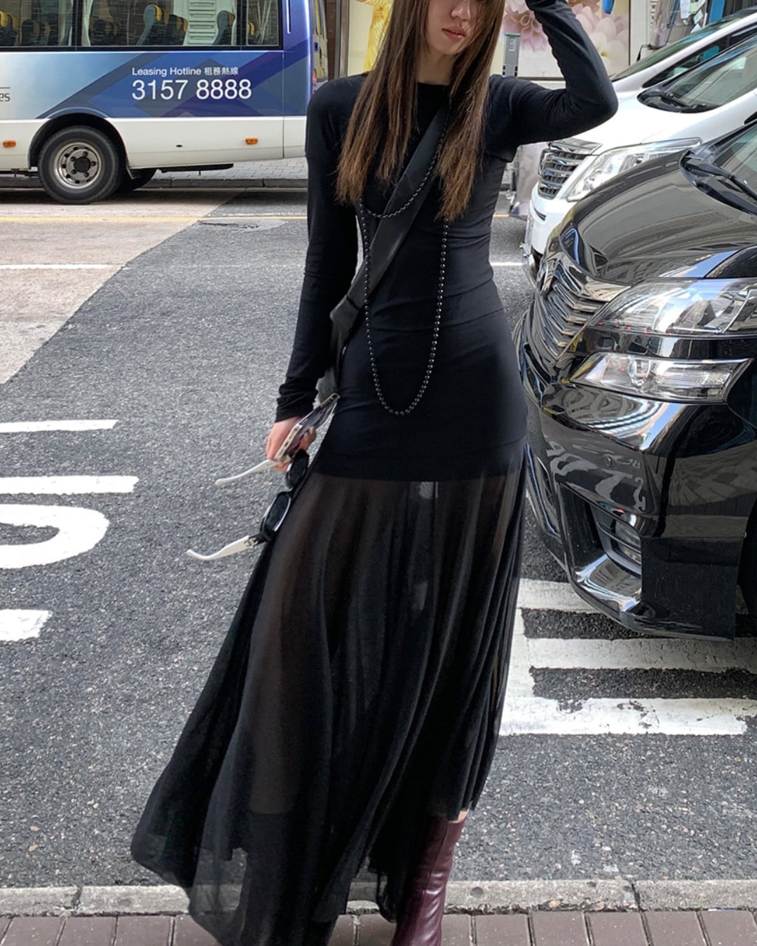 #マーメイドシルエット #異素材ミックス #シアーワンピース #大人ブラックコーデ #スタイルアップ #秋冬ワンピース