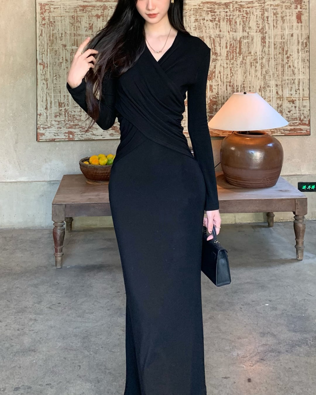 女性らしさを引き立てる上品なマーメイドシルエットに、程よいフィット感とドレープが美しいロングワンピース。ボディラインを優しく包み込みながらスタイルアップも叶う、シンプルながら計算された1着。ジャケットやトレンチコートと合わせて、大人の洗練スタイルにもおすすめです。