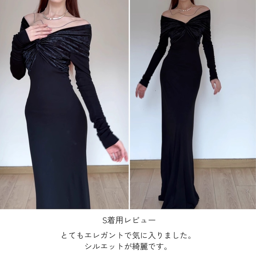 #オフショルダー #マーメイドワンピース #ベルベット #ドレープデザイン #パーティードレス #ロングワンピース #ブラックワンピース