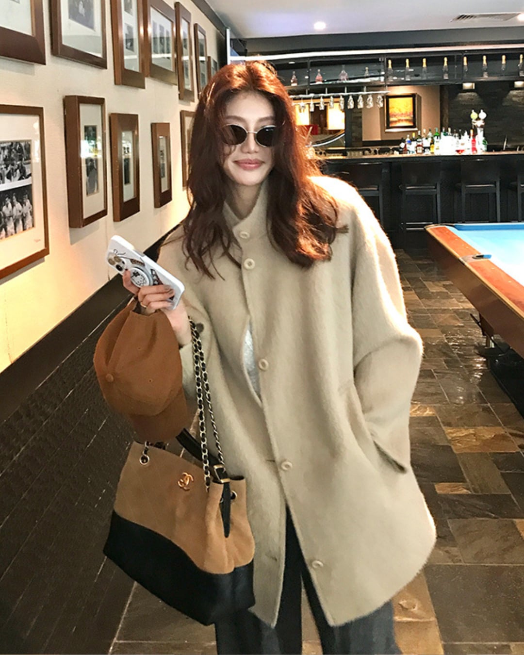 #スタンドカラーコート #ベージュコート #ドロップショルダー #ミドル丈アウター #ウール混コート #秋冬アウター #大人カジュアル #ナチュラルコーデ