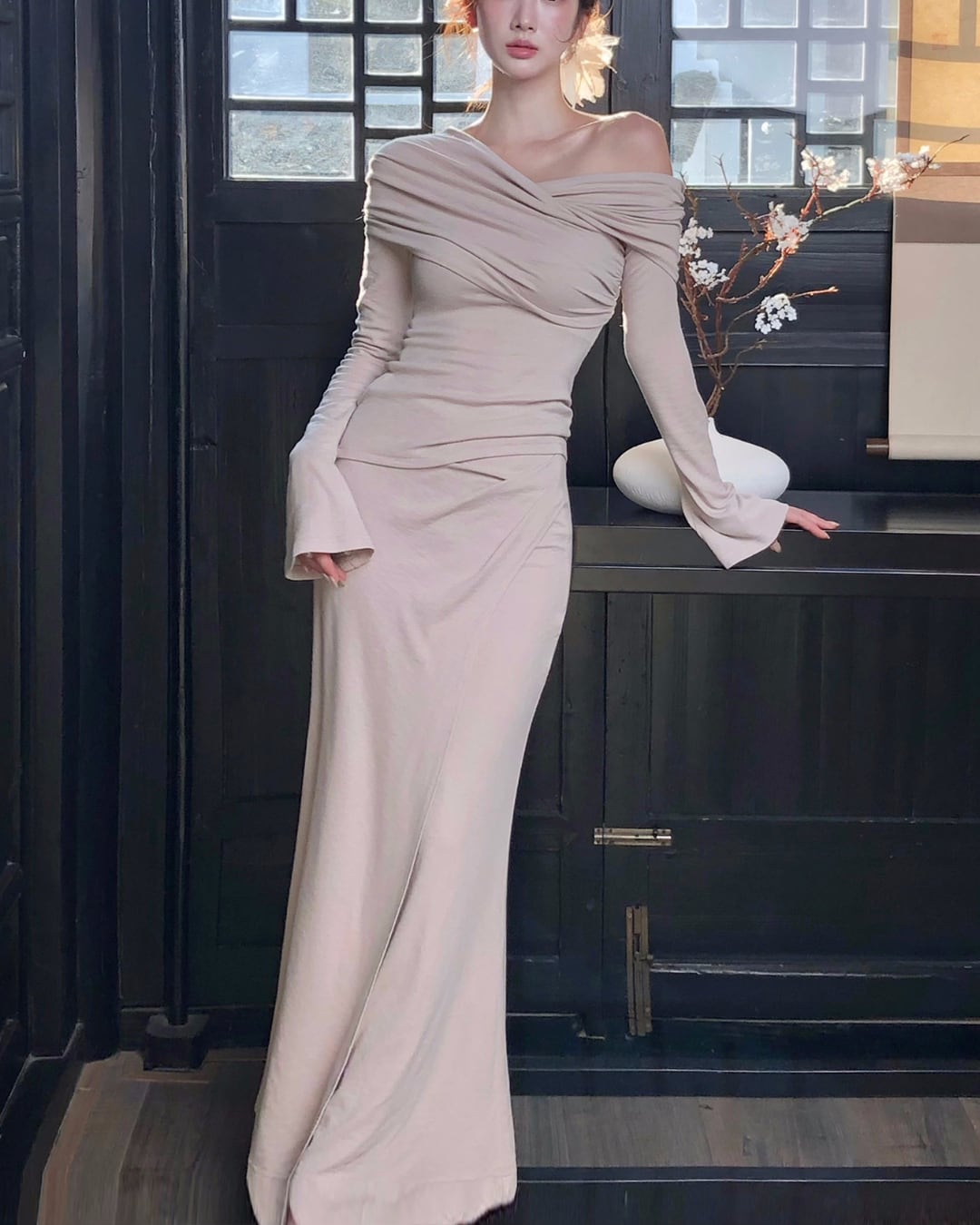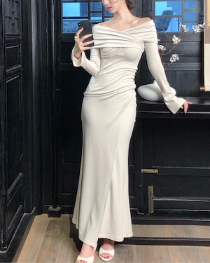 #オフショルダー #セットアップ #ドレープデザイン #美シルエット #マーメイドライン #大人可愛い