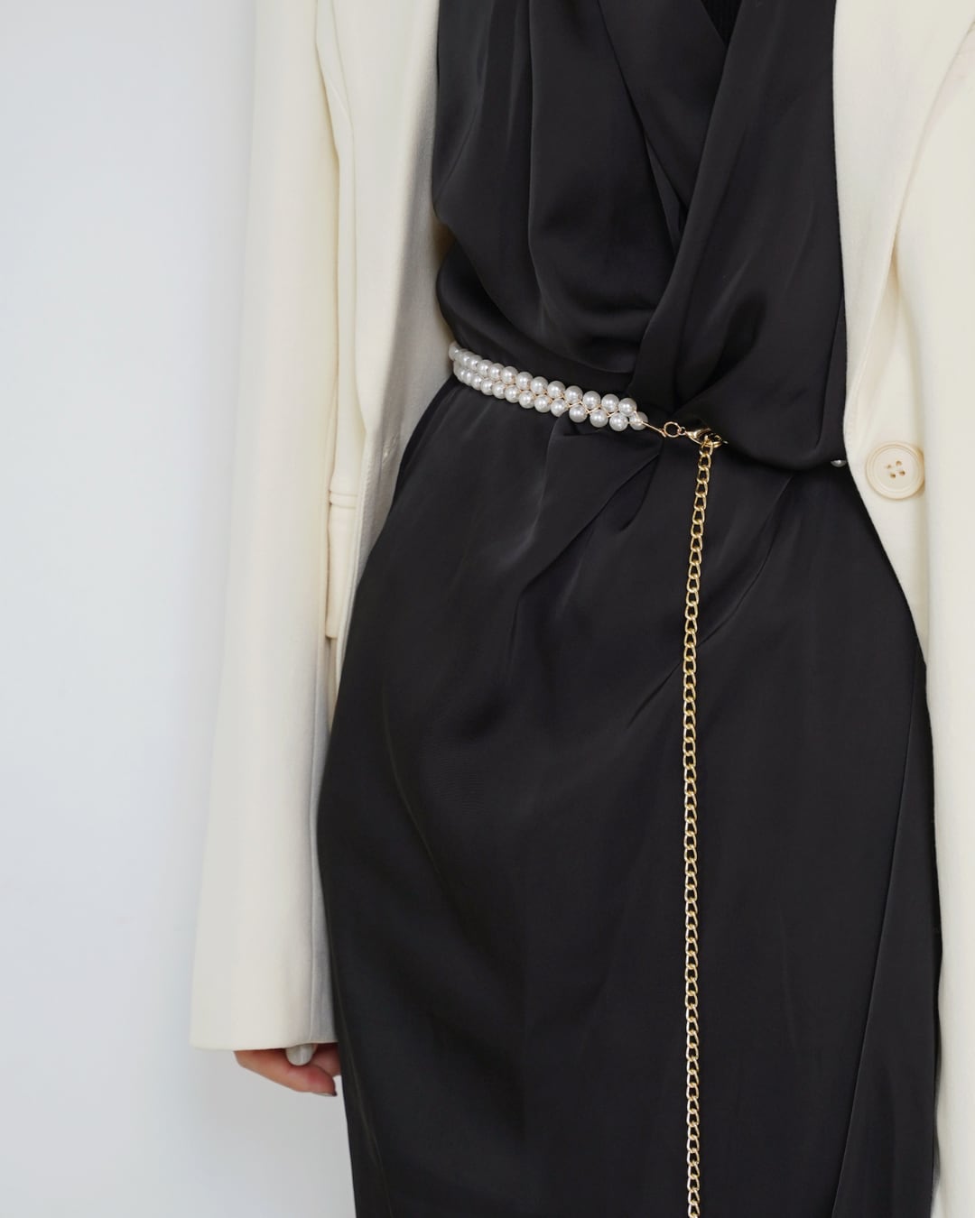 #ウエストベルト #パールアクセ #チェーンベルト #ウエストマーク #高見え小物 #レディースファッション