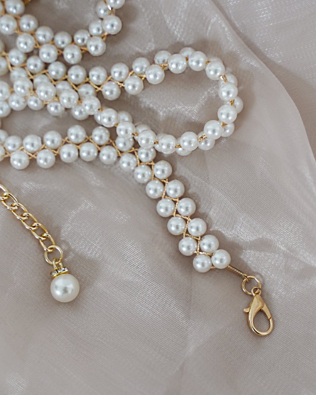 上品なパールとゴールドチェーンを組み合わせた、華奢でエレガントなウエストベルト。スーツやワンピースに合わせて、ウエストラインを美しく引き締めるアクセントに。フリーサイズで調整可能、スタイリングに気軽に取り入れられる万能アイテムです。