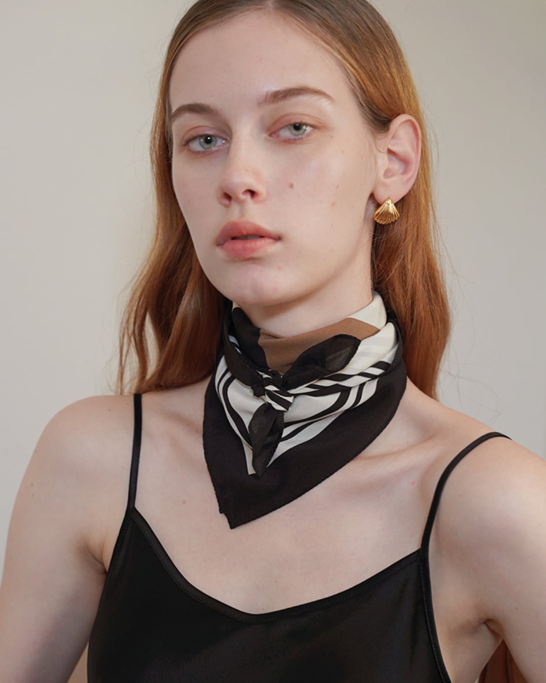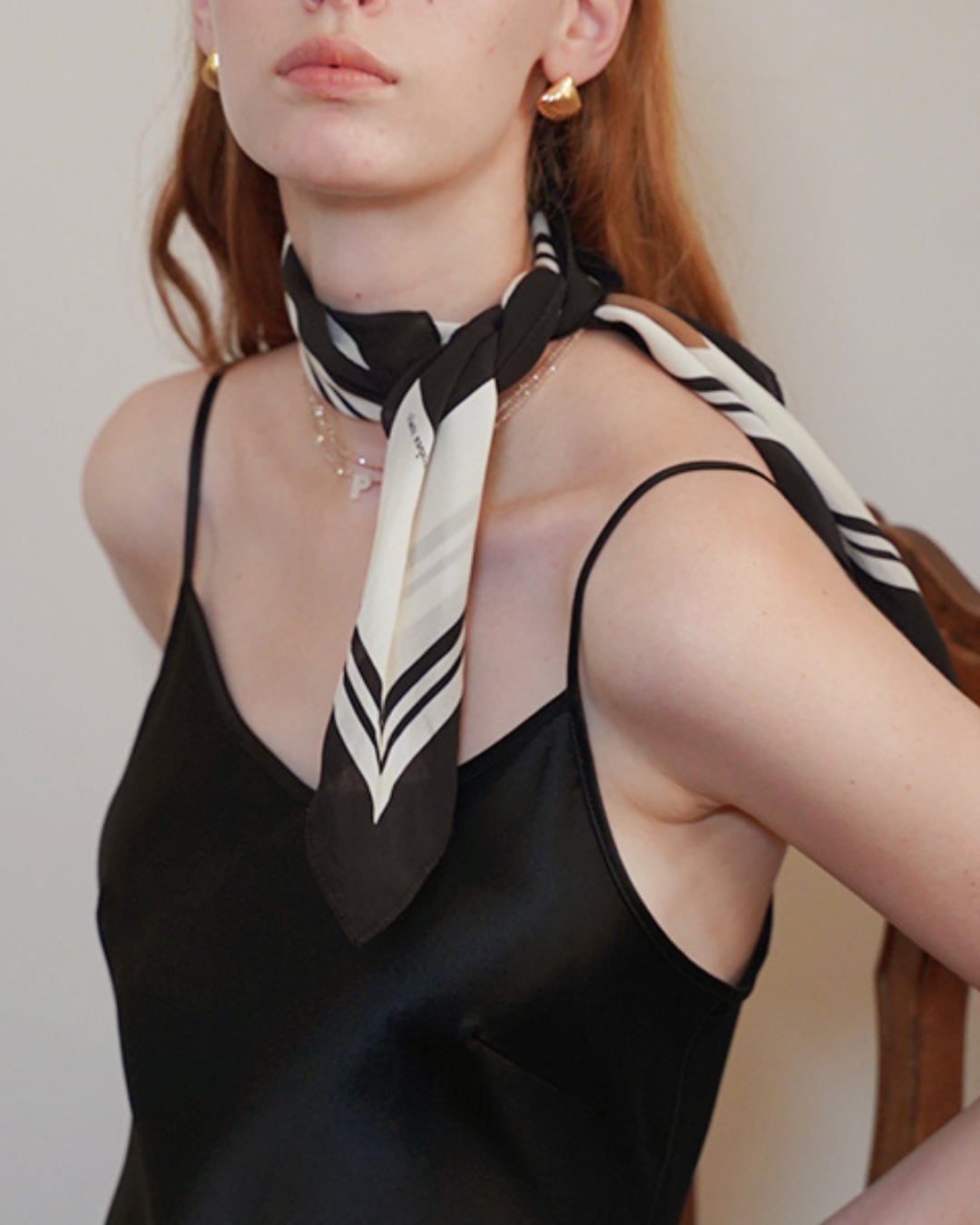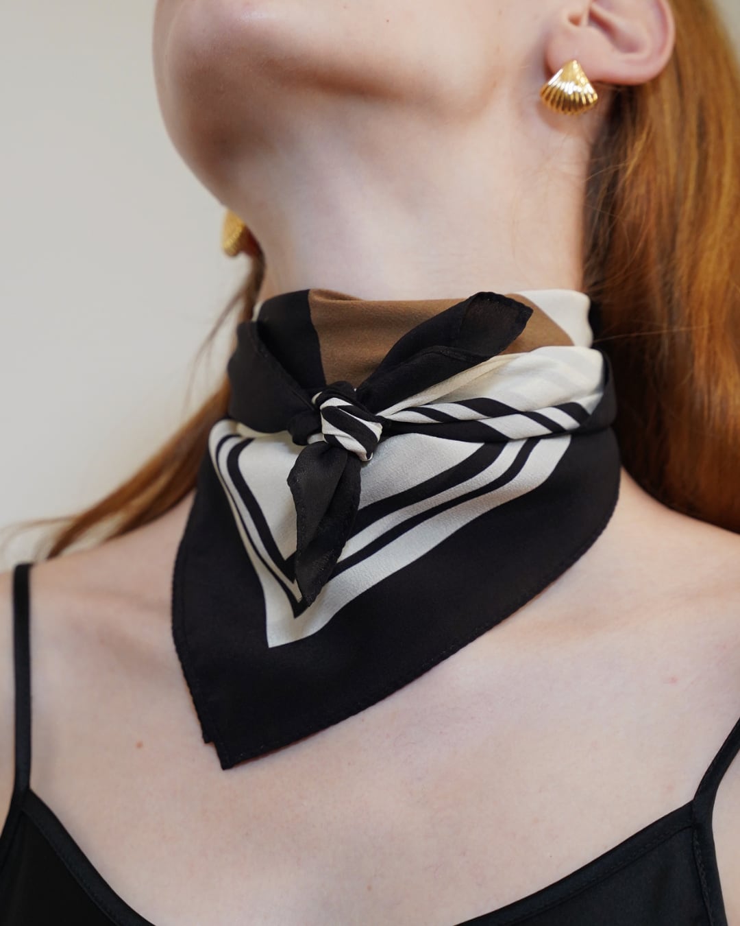 #シルクスカーフ #ジオメトリック柄 #首元アクセント #高級感 #モノトーン #パンルルパン
