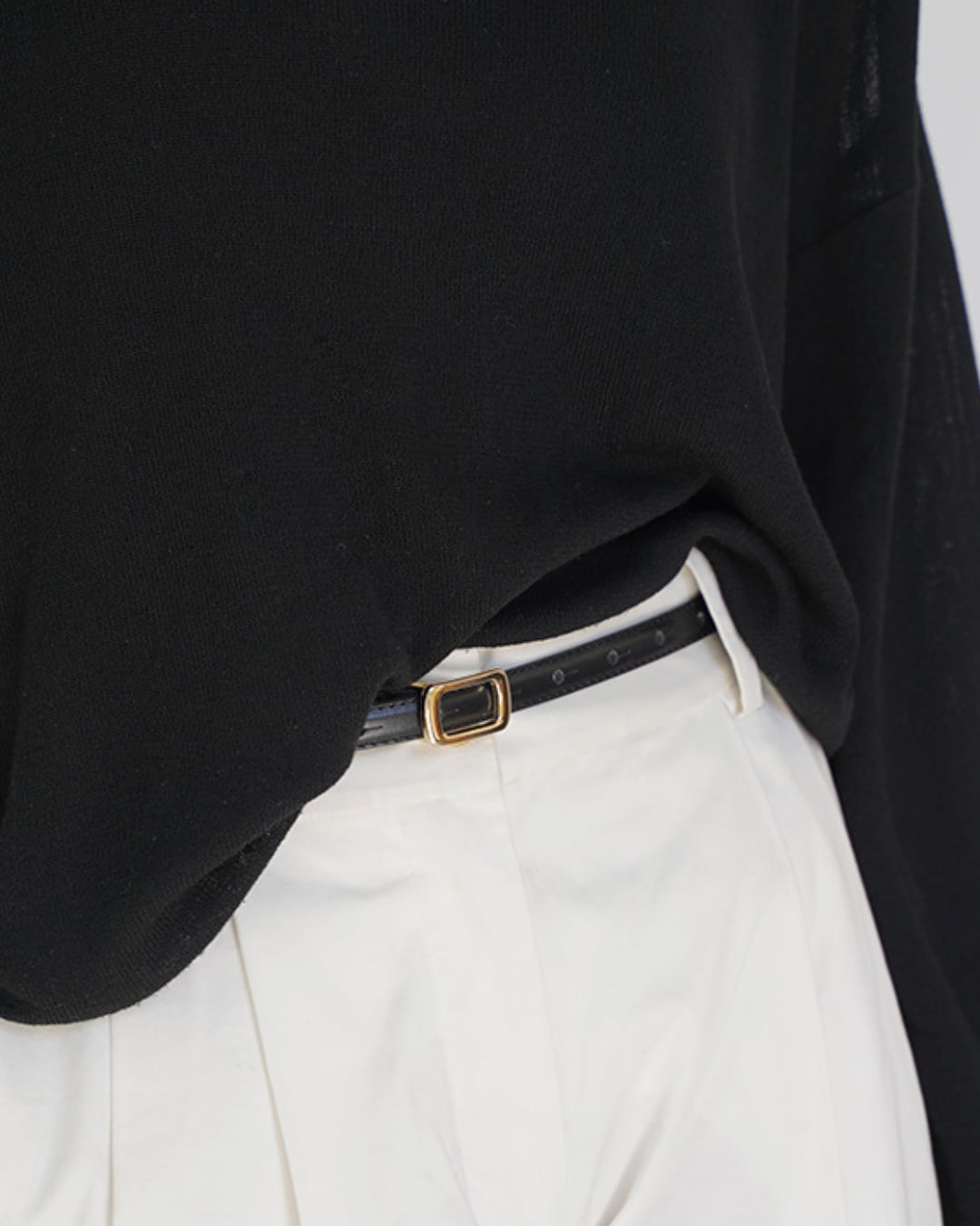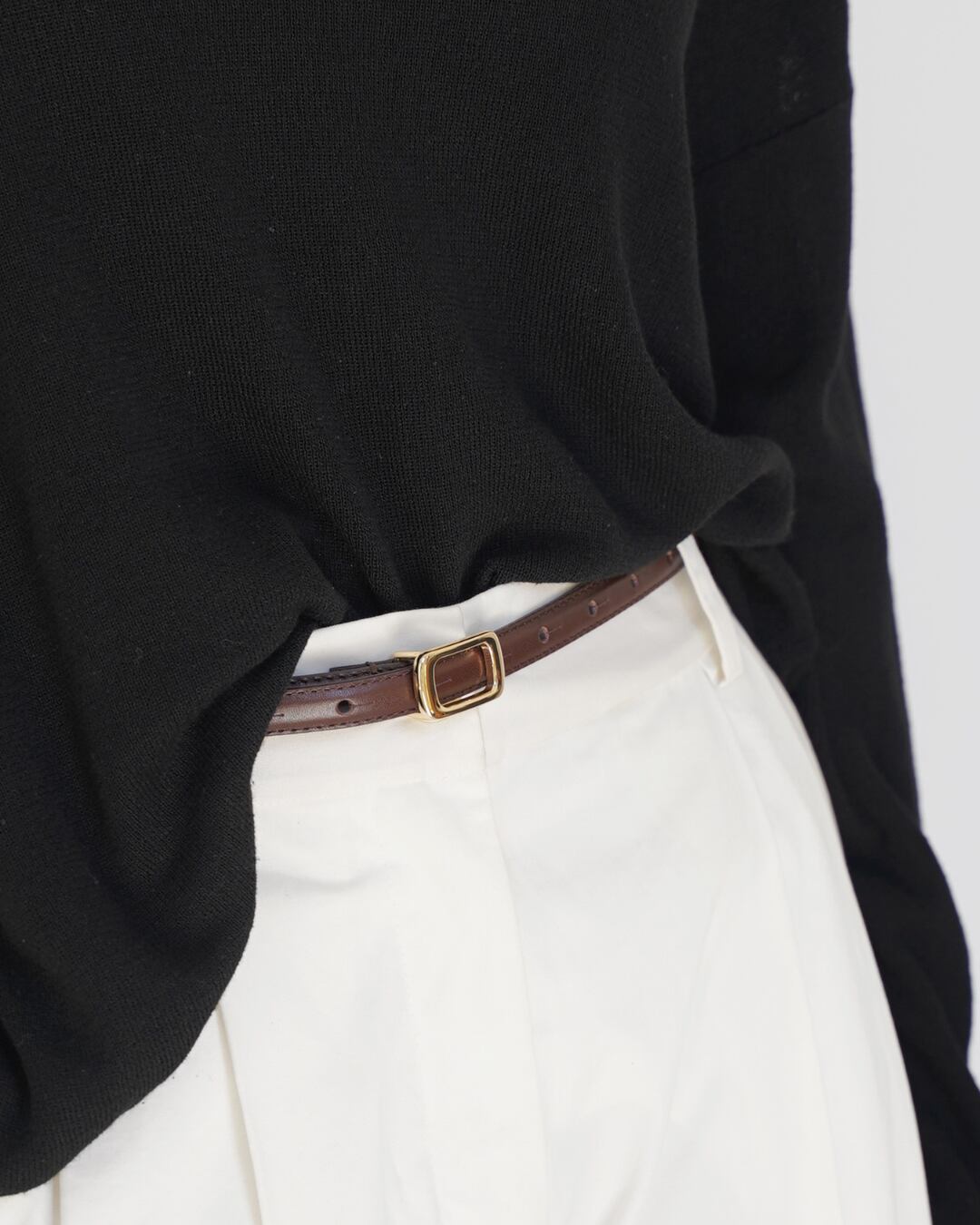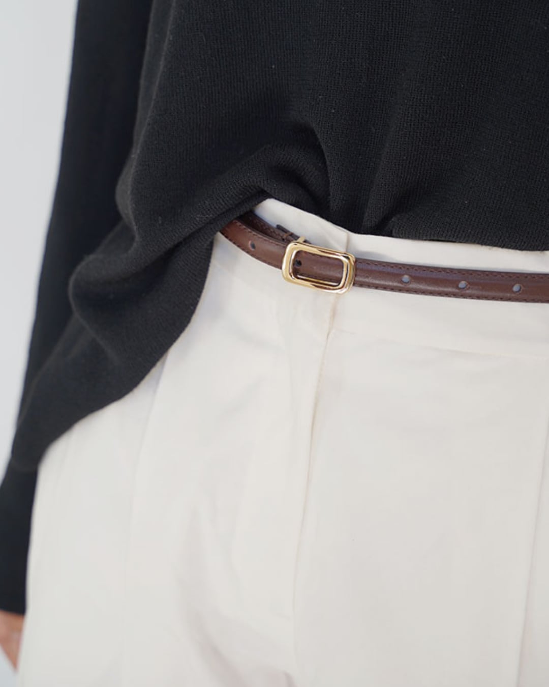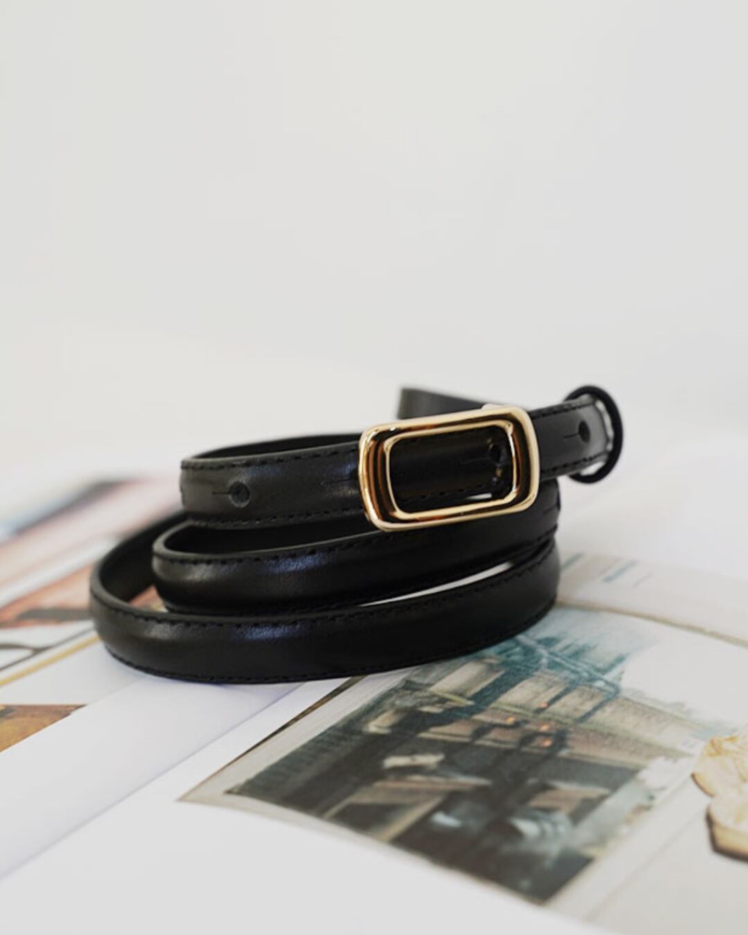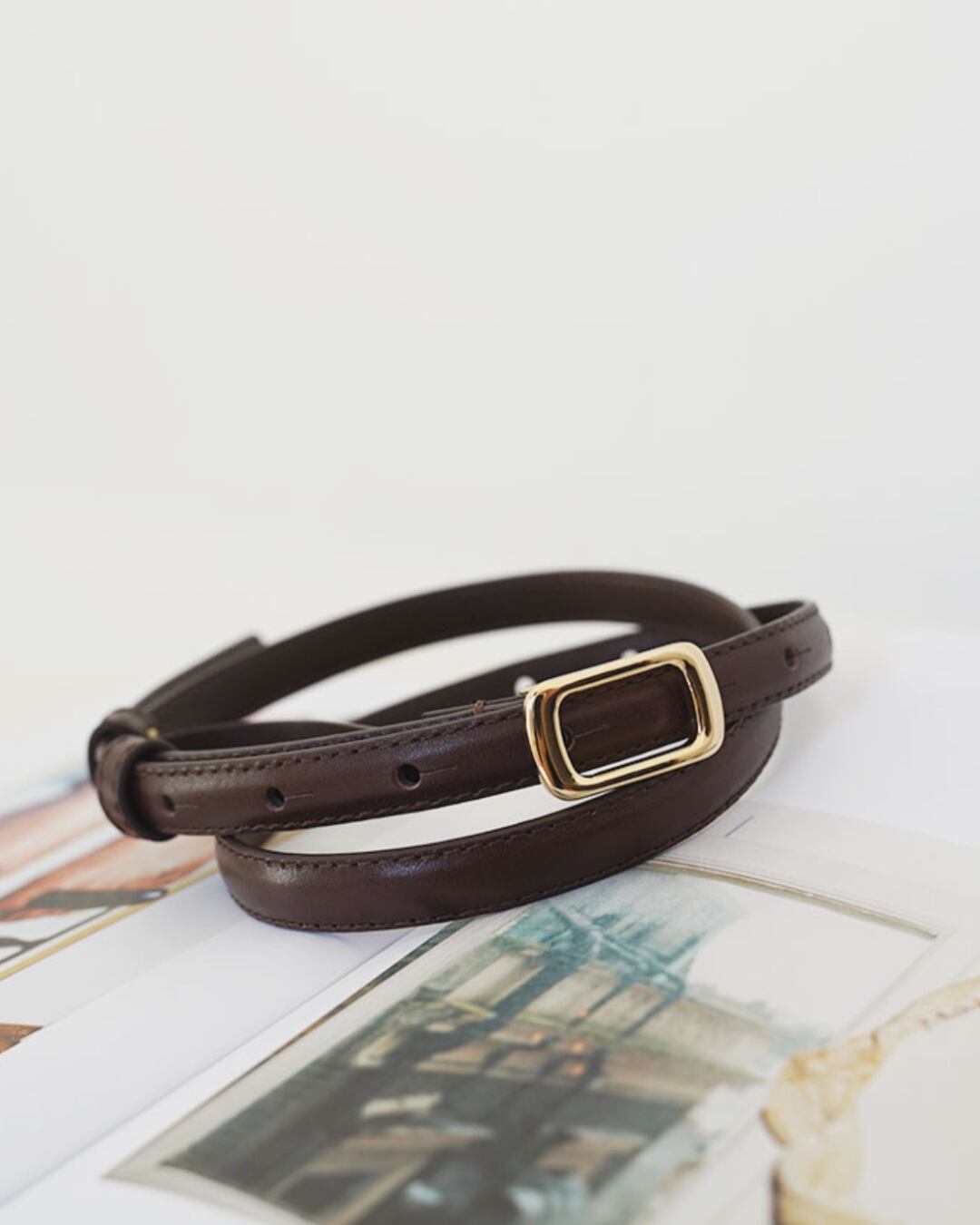 小ぶりなスクエアバックルが上品な印象を与える、シンプルデザインのレザーベルト。幅1.3cmのスリムなシルエットで、シャツやワンピース、パンツスタイルにもフィット。丁寧に仕上げられた本革素材で高級感があり、日常使いからきちんとコーデまで幅広く活躍します。