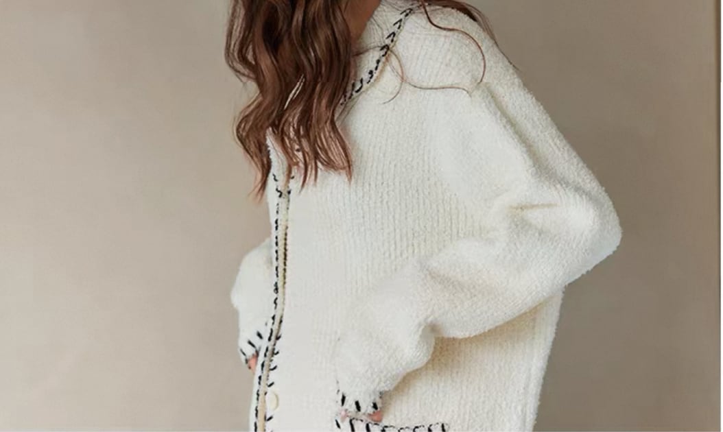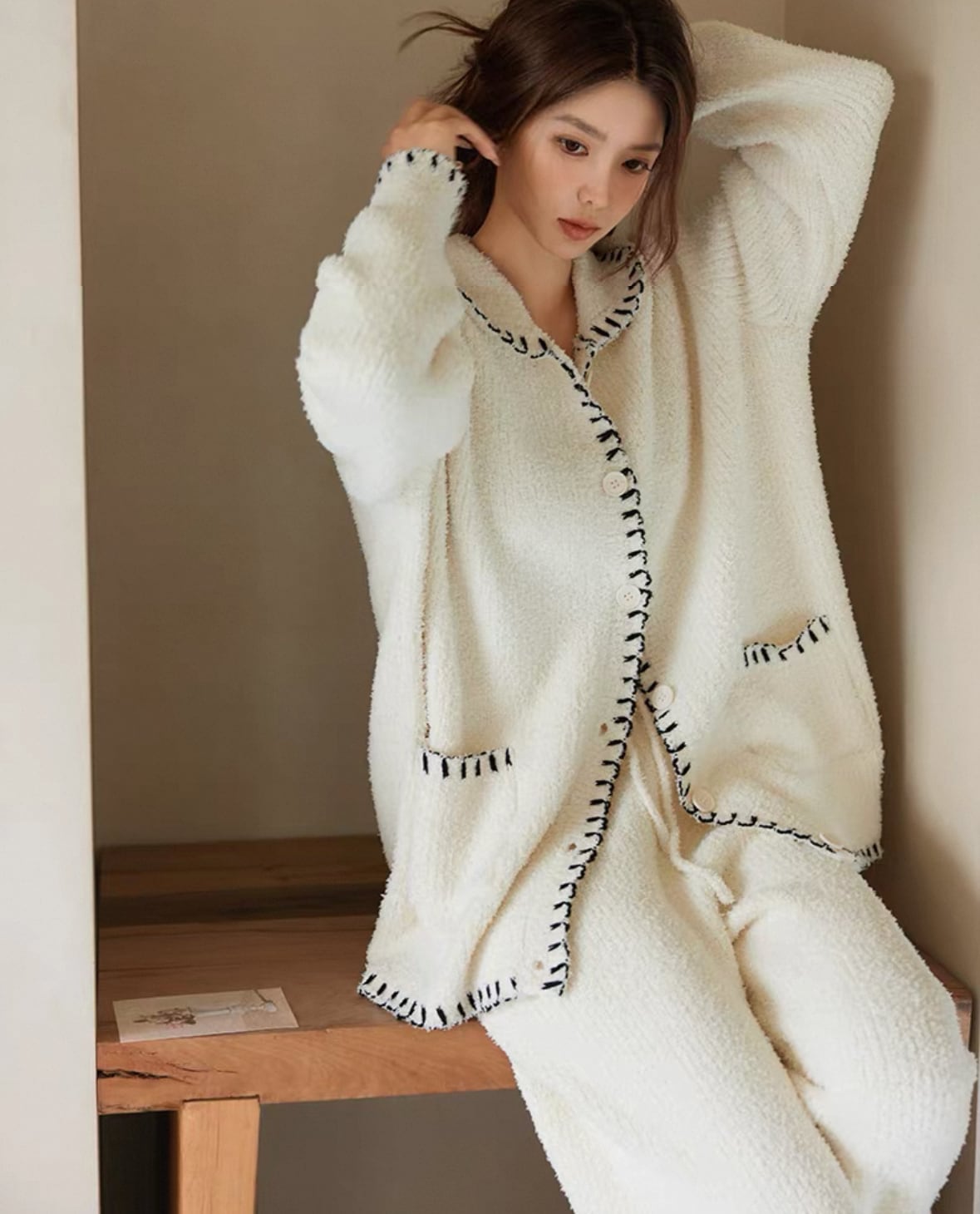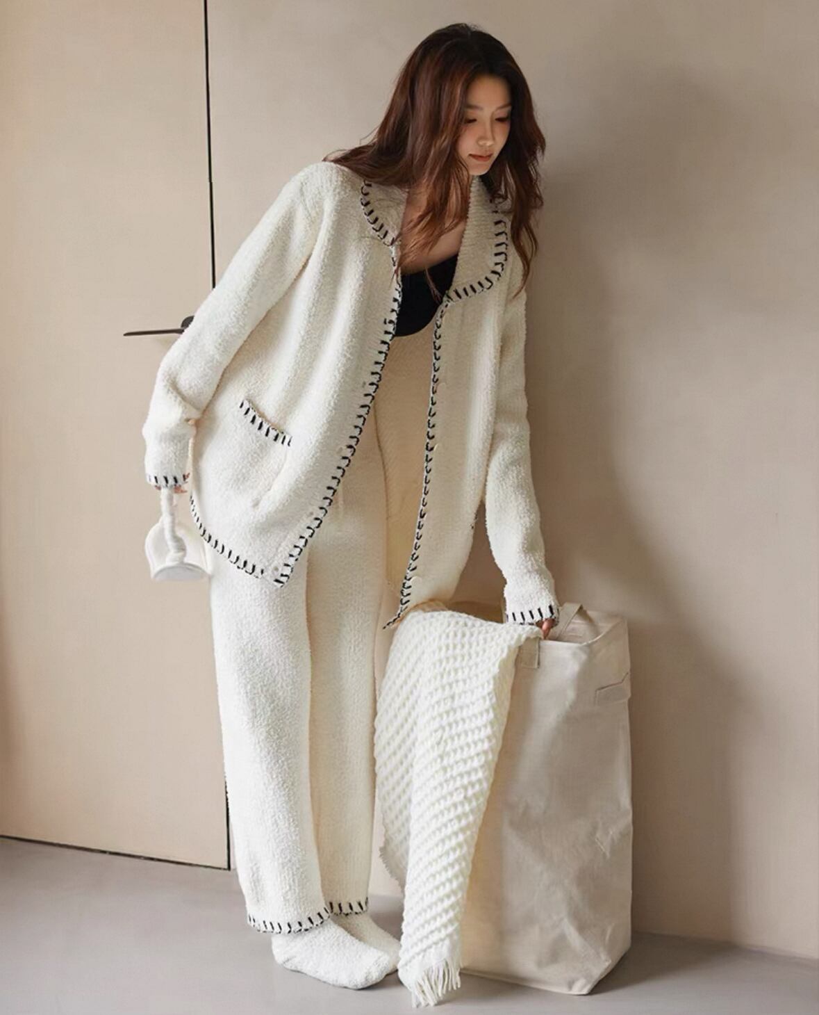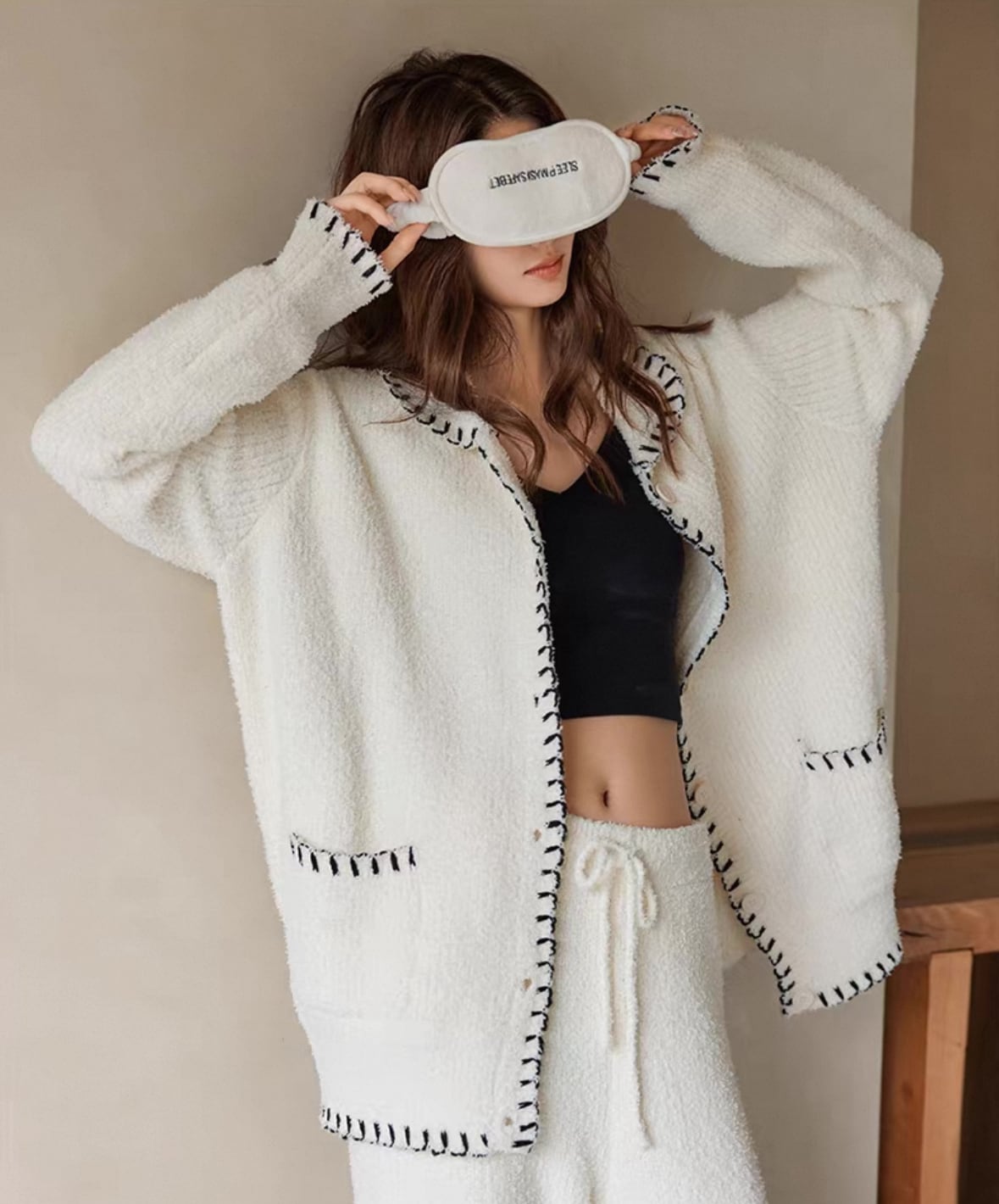 #ルームウェア #カーディガンセット #もこもこ素材 #配色ステッチ #ワンマイルコーデ #リラックススタイル