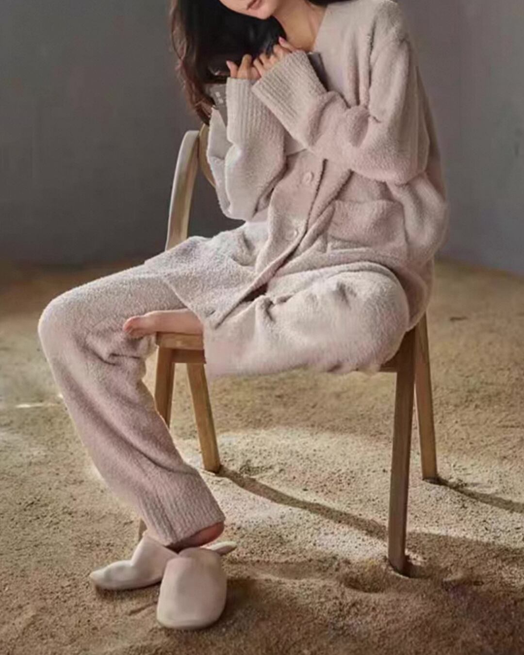 #ルームウェア #Vネック #ブークレ素材 #ナチュラルカラー #おうち時間 #カーディガンセット