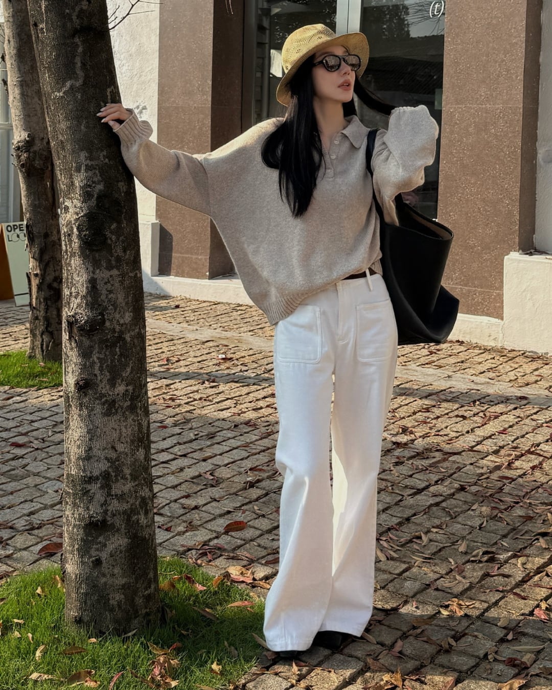 #ポロニット #オートミールカラー #老舗風 #ゆったりトップス #クラシカルコーデ
