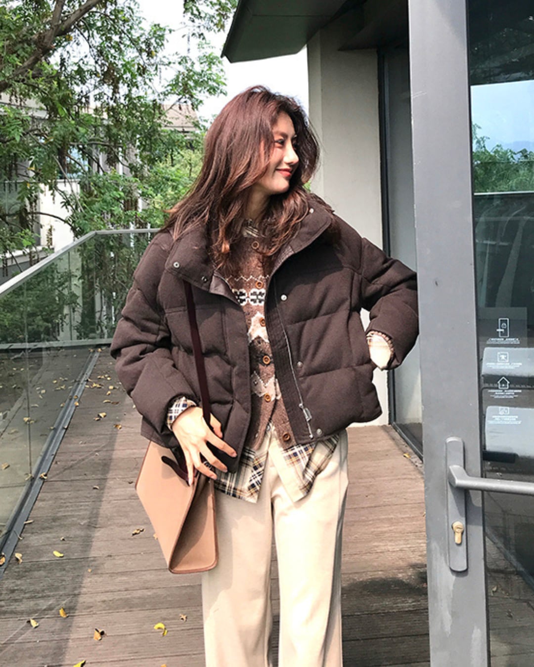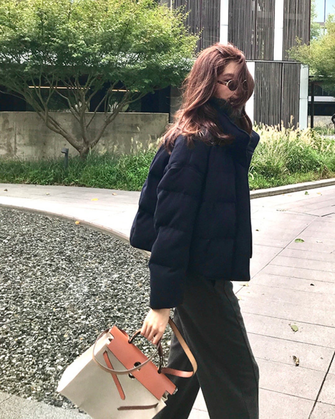 #ダウンジャケット #ホワイトグース #立ち襟 #保温アウター #秋冬コーデ #ゆったりシルエット