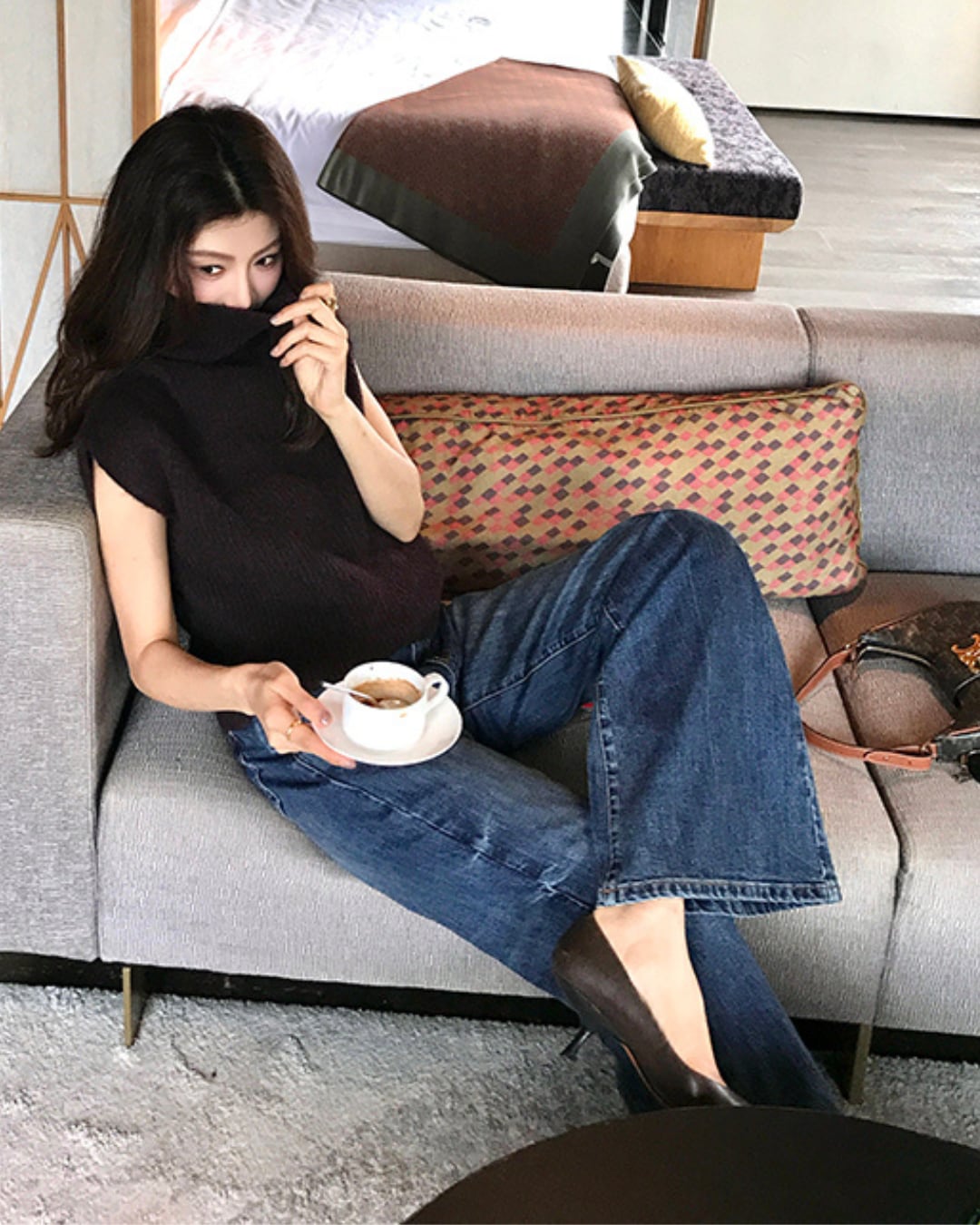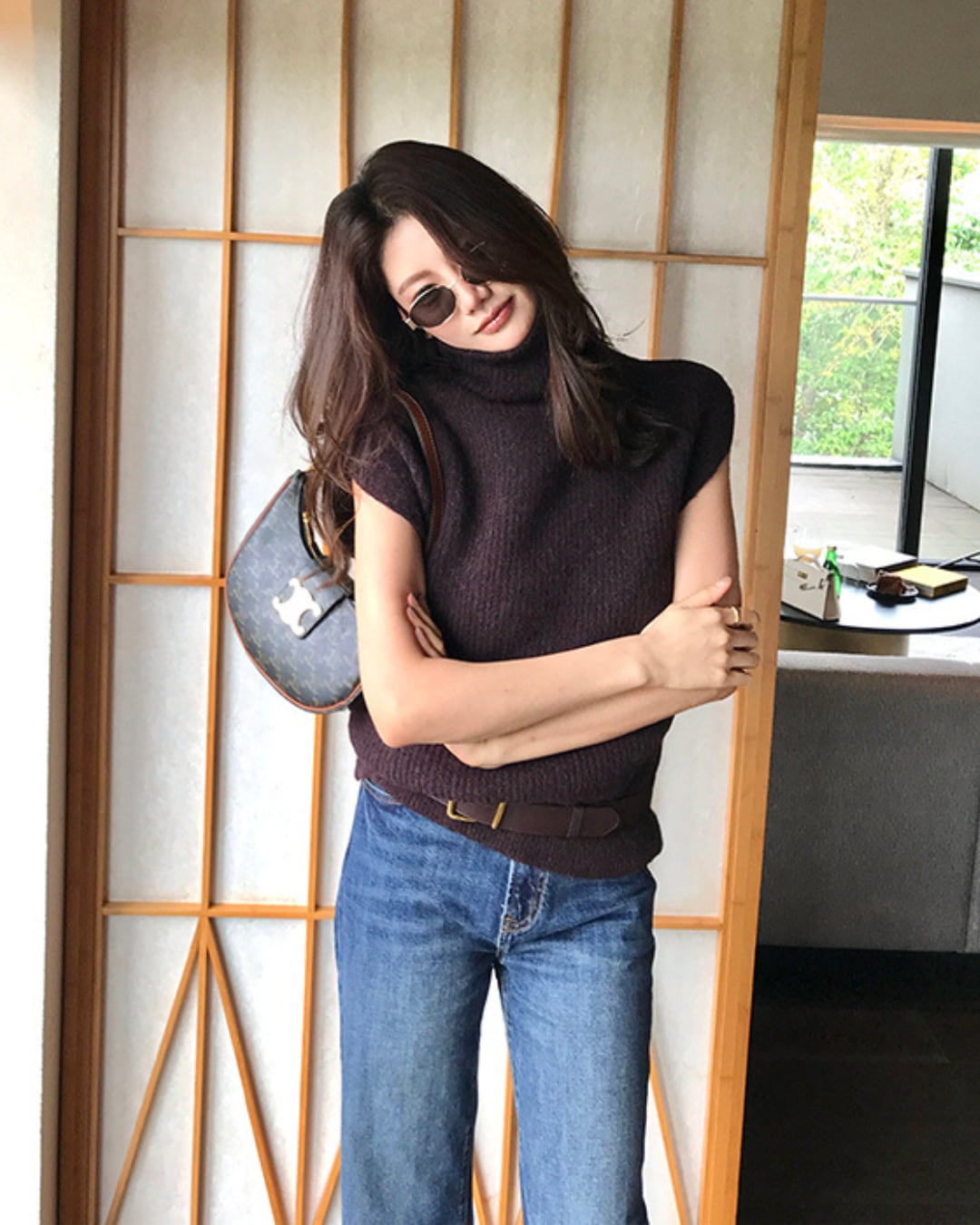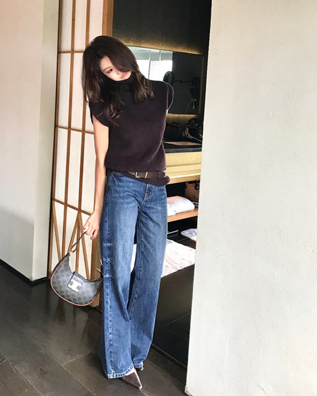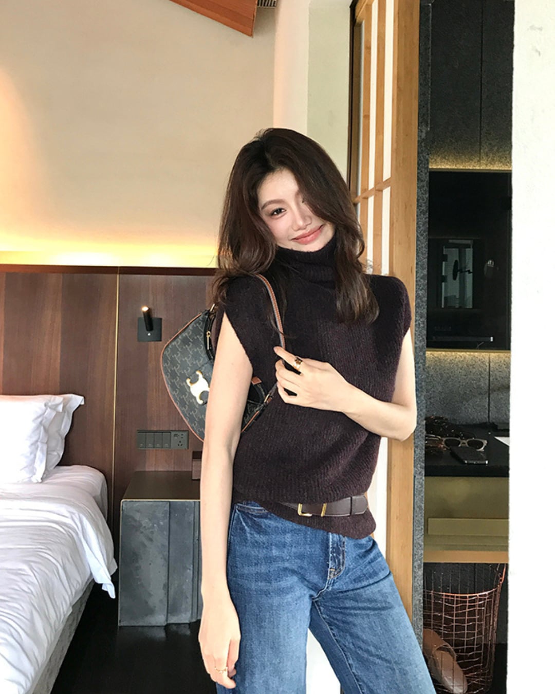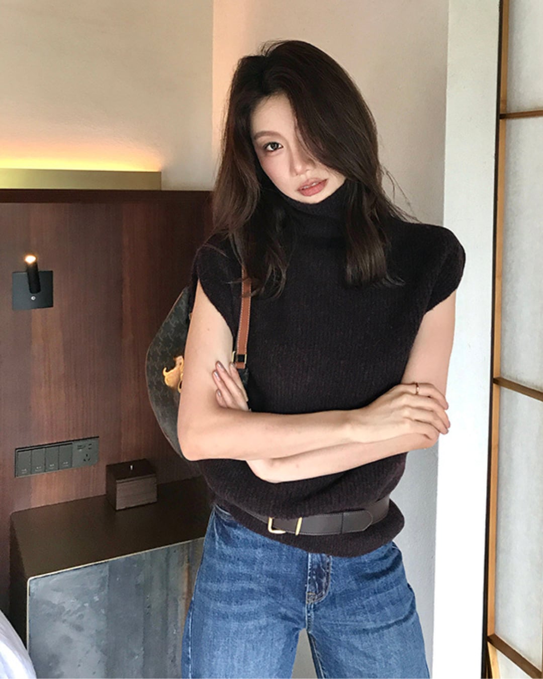 #ハイネック #ニットベスト #レイヤードコーデ #大人カジュアル #秋冬アイテム #ノースリーブニット