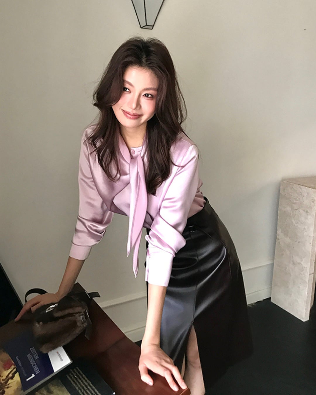 #ボウタイブラウス #サテンブラウス #光沢トップス #アシンメトリー #大人フェミニン #秋コーデ