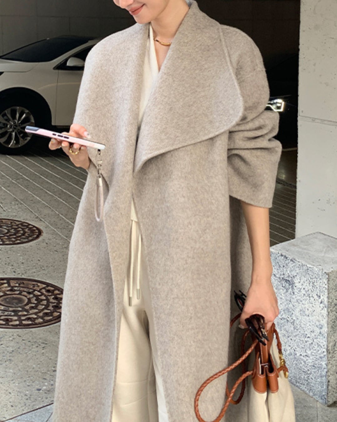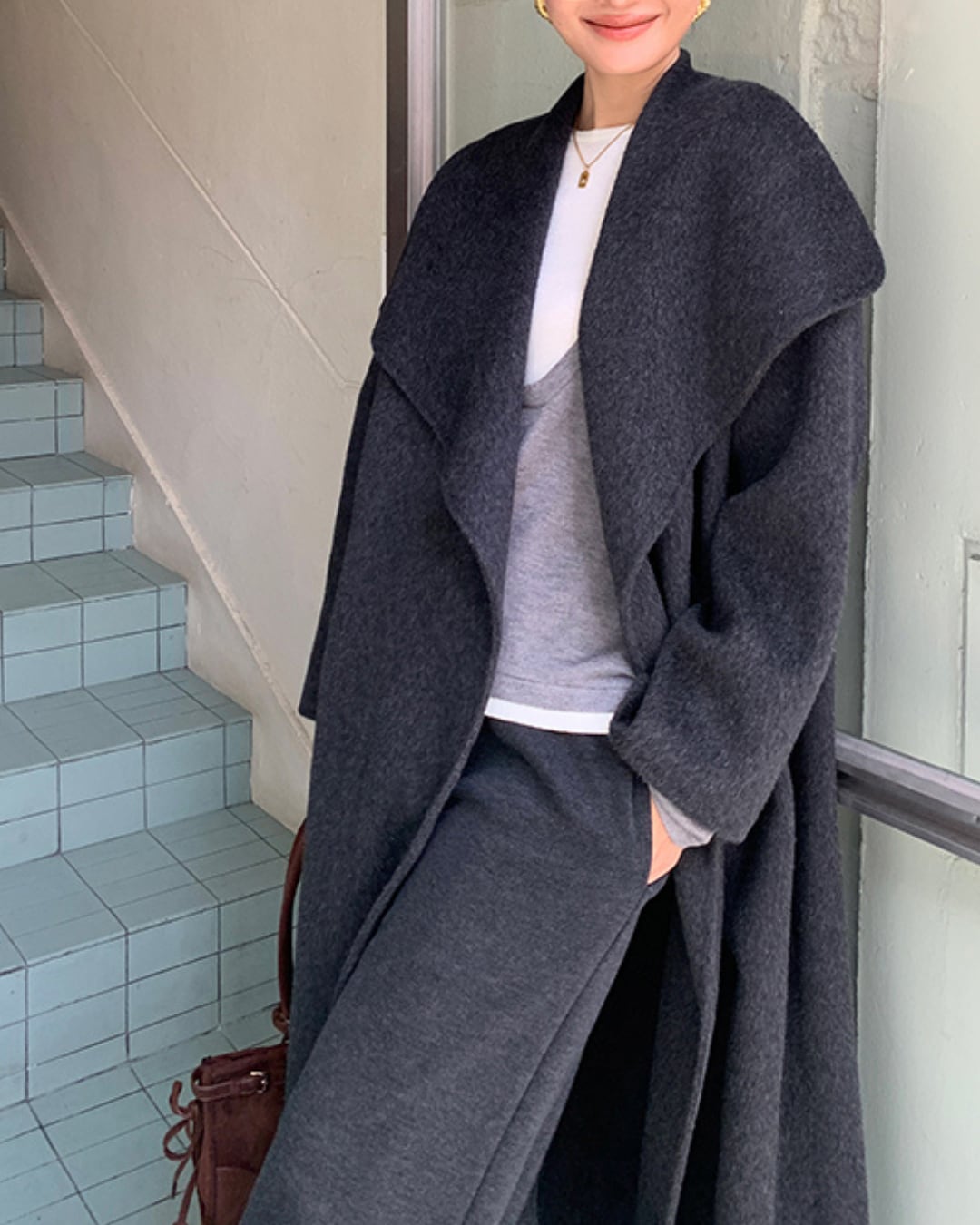 リュクスな素材感とボリュームのあるシルエットが魅力のロングウールコート。ゆったりとした落ち感のあるデザインは、羽織るだけで大人の洗練スタイルに。上質なウールブレンドにシルクやカシミヤライクな素材をミックスし、軽やかさと暖かさを両立した一着。秋冬コーデを格上げしてくれるマストハブアイテムです。