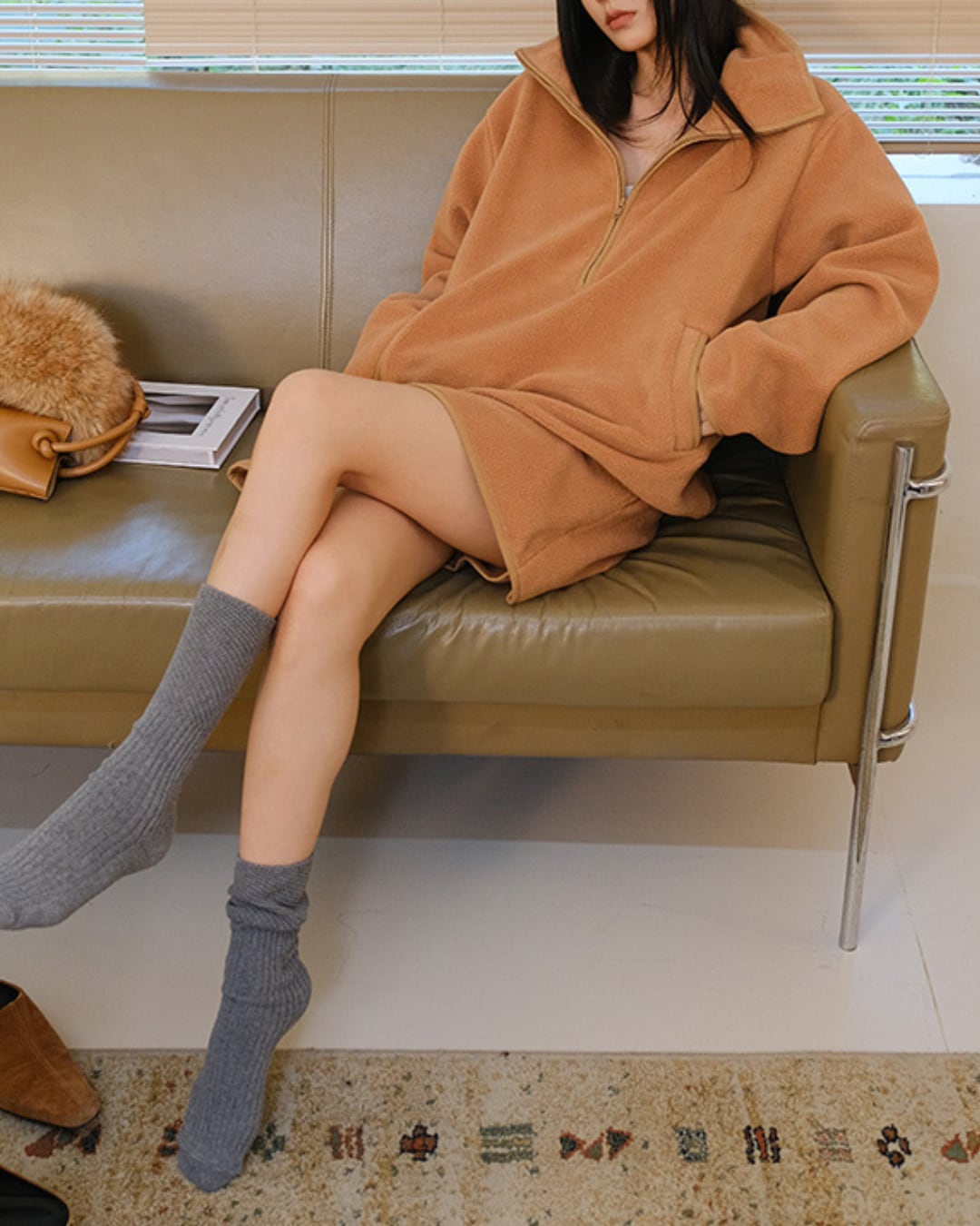 ふんわりとしたボア素材が可愛いハーフジップのトップスとミニスカートのセットアップ。ゆったりとしたシルエットでこなれ感を演出しつつ、高めのハイウエストスカートで脚長効果も◎。カジュアルな中に女性らしさが光る、秋の主役アイテムです。