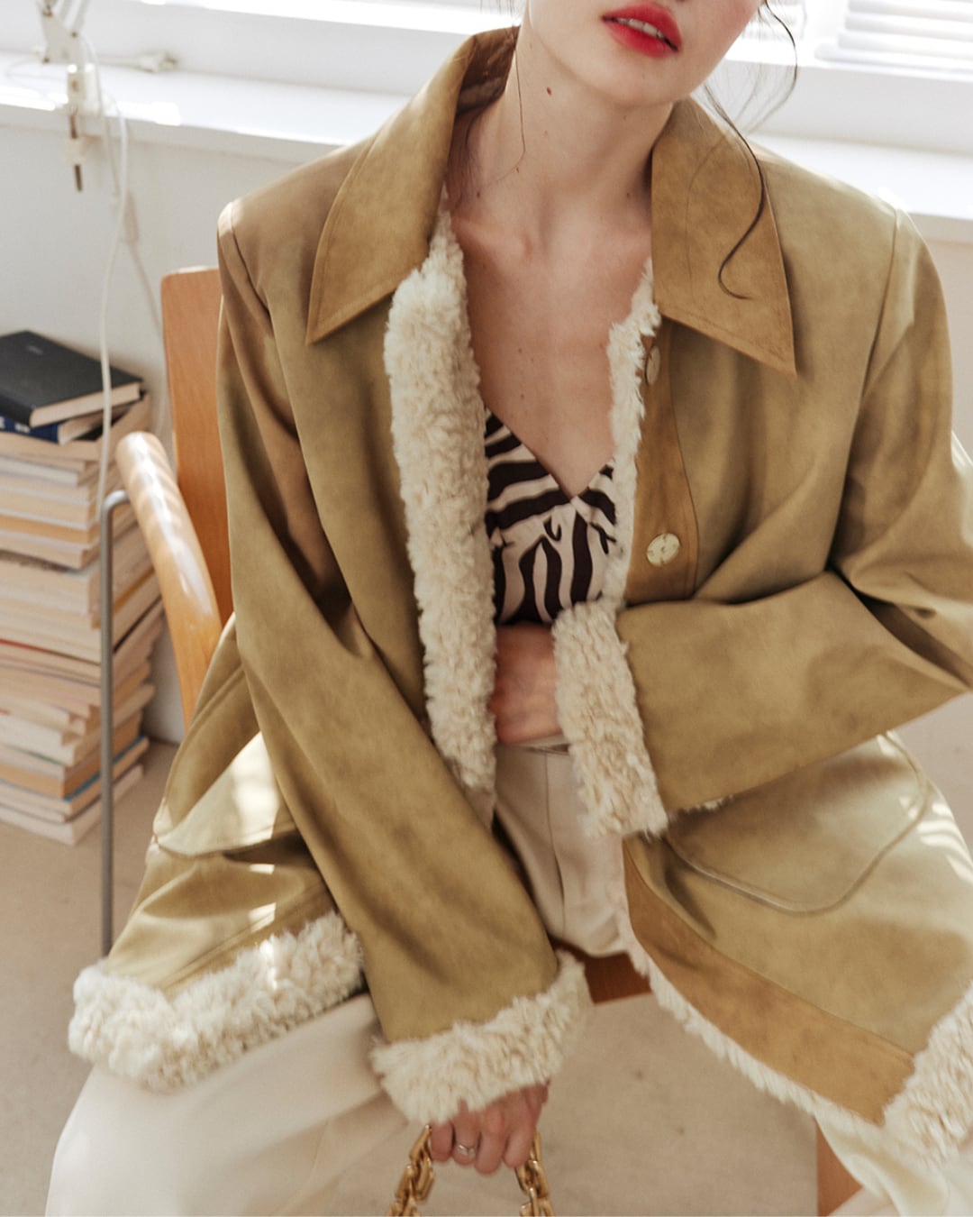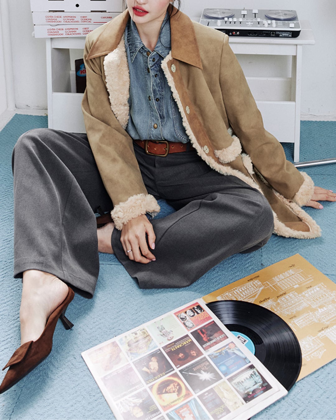 #ボアジャケット #スエードアウター #フェイクムートン #冬アウター #カジュアルコーデ #韓国ファッション #ローズバンクス