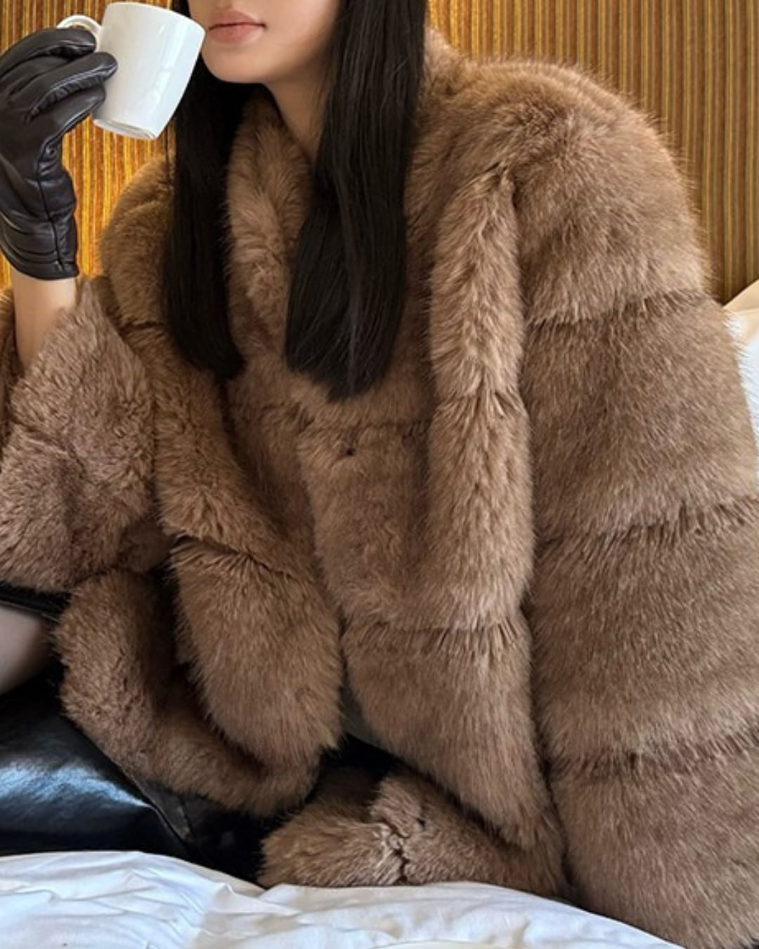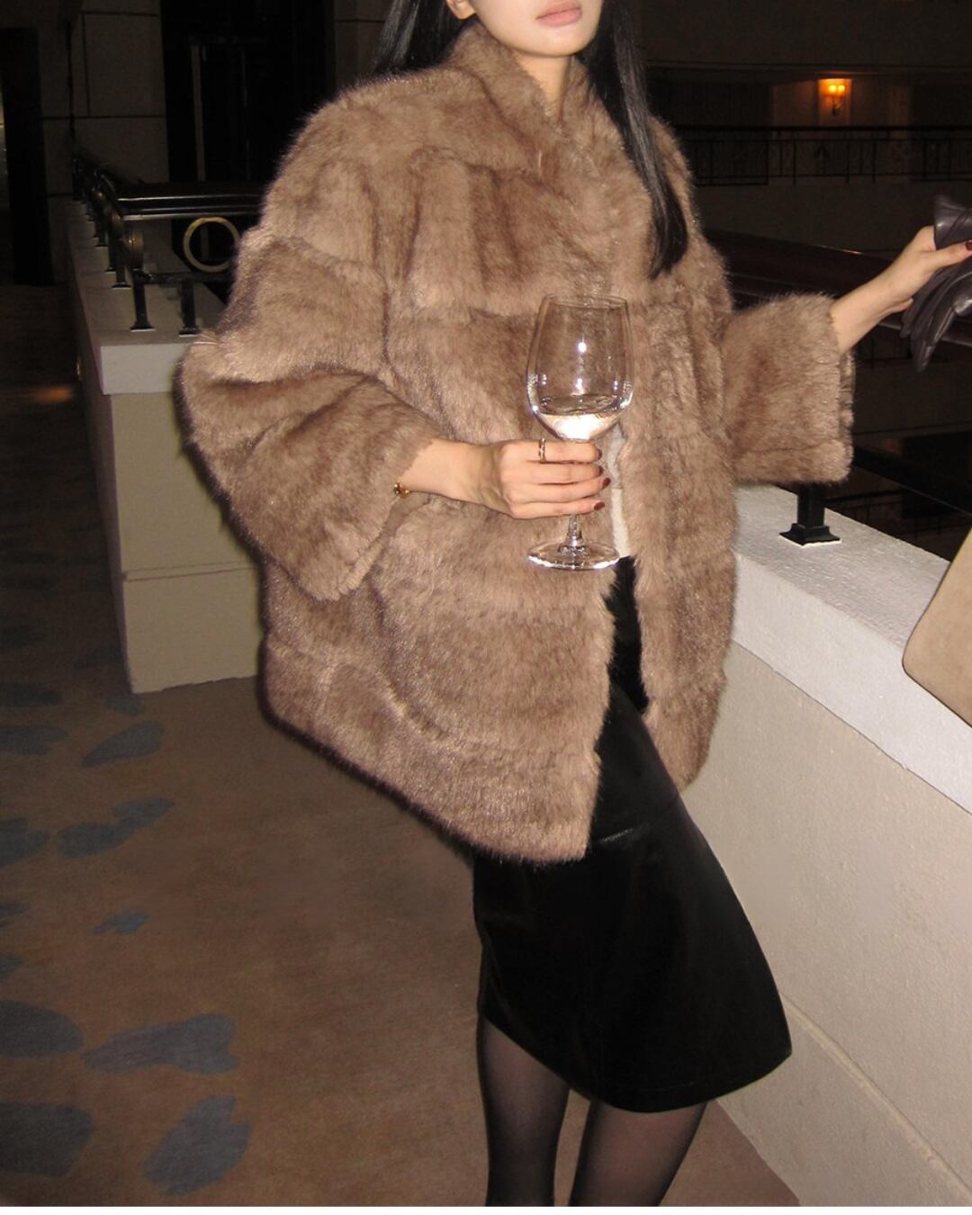 ふんわりと柔らかく高級感のあるフェイクファー素材を使用した、ボリューム感が魅力のショートコート。短め丈と立体的な質感がバランスよく、リラックスしたシルエットで抜け感ある着こなしが叶います。