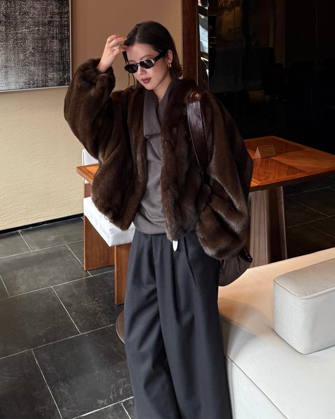 #フェイクファー #ショート丈アウター #ボリュームスリーブ #ラグジュアリー #大人コーデ #トレンド感