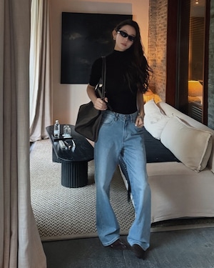 カジュアルな中に上品さを感じさせるライトブルーデニム。ハイウエストとゆるやかなフレアシルエットが脚を長く見せ、全体のバランスを美しく整えてくれます。水洗加工された生地は柔らかく、履くたびに肌になじむ優しい風合い。サイドポケット付きで実用性も◎