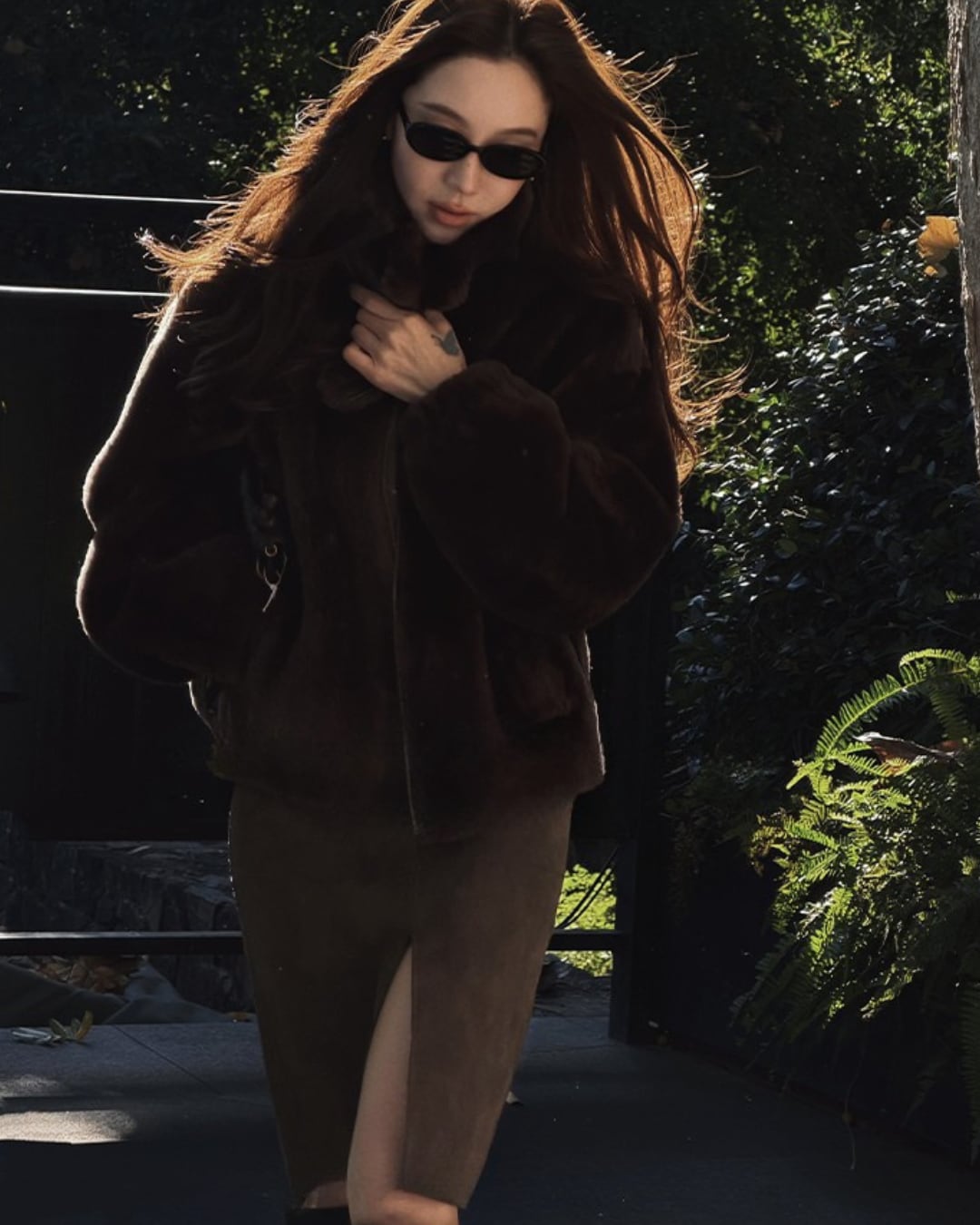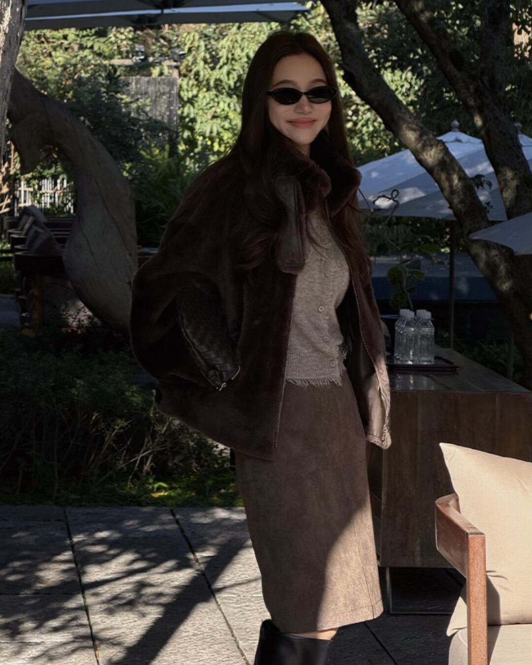 #フェイクスエード #Hラインスカート #フロントスリット #ハイウエスト #秋冬コーデ #ブラウンスカート